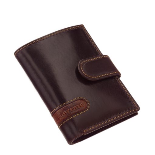 Fényes felületű, ötletes dizájnnal rendelkező díszdobozos valódi bőr kártyatartó modell, mely a Lorenzo Menotti márkacsalád minőségi terméke.