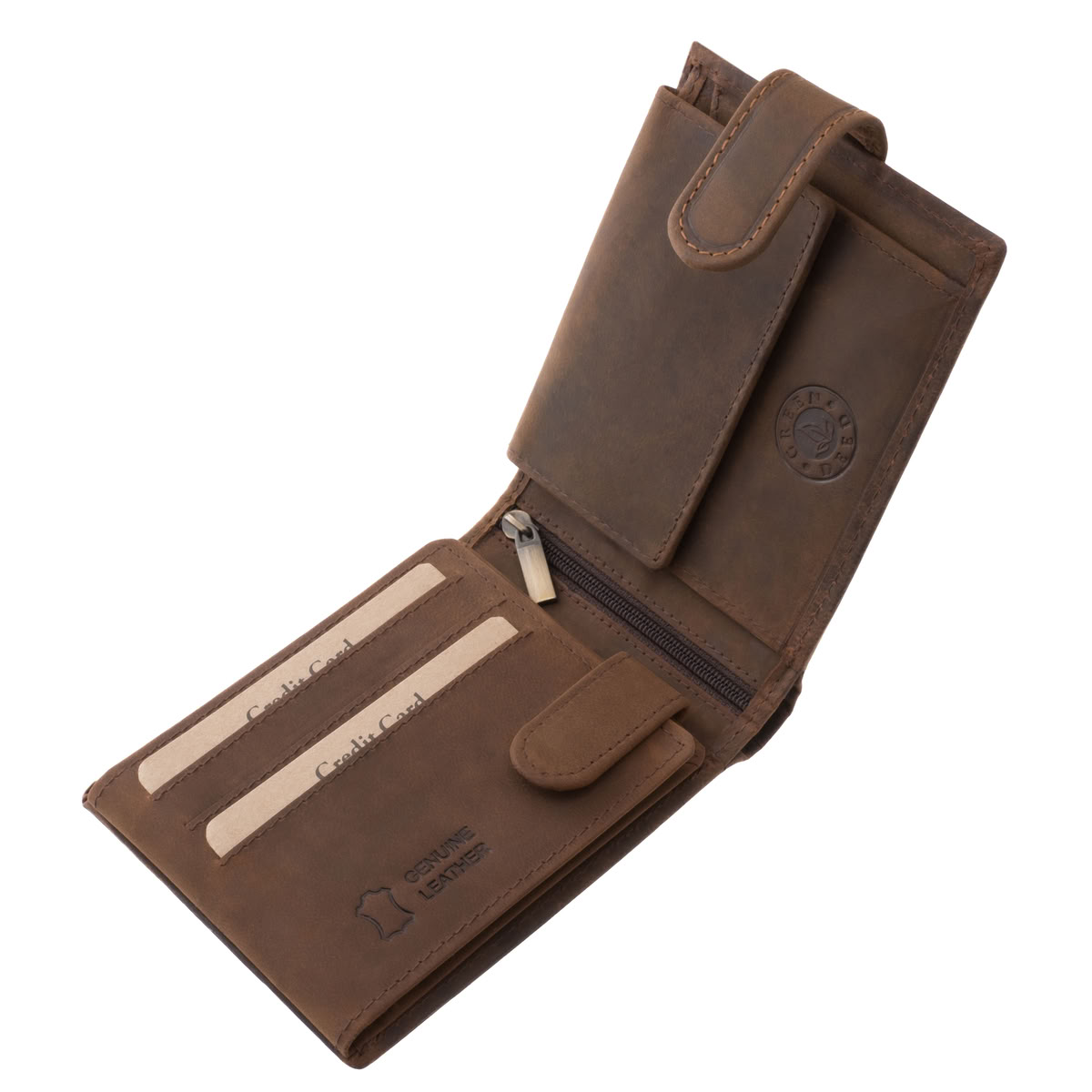 A pénztárca natúr barna, valódi marhabőrből készül, amely idővel egyedi patinát kap.