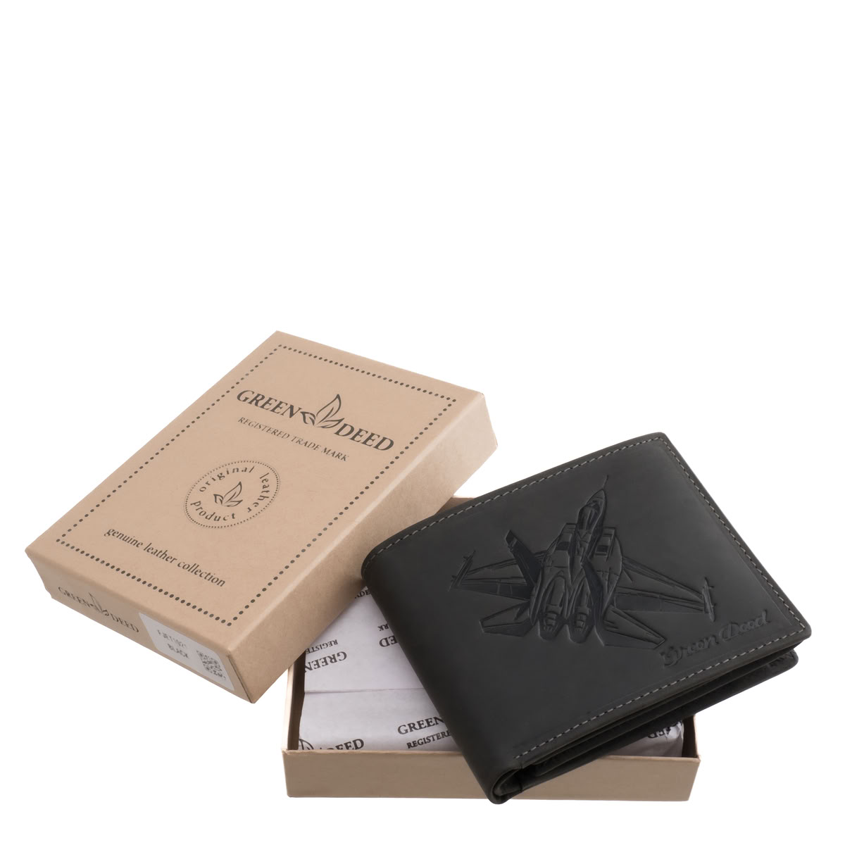 Ez a GreenDeed márkájú, valódi bőr férfi pénztárca különleges modellünk, amelynek fedelét egy részletgazdag, vadászgép mintával díszítettük.
