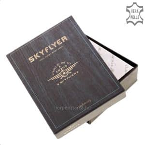 SKYFLYER márkájú sportos, kártyatartós férfi bőr pénztárca természetes hatású barna marhabőrből, vintage stílusban.