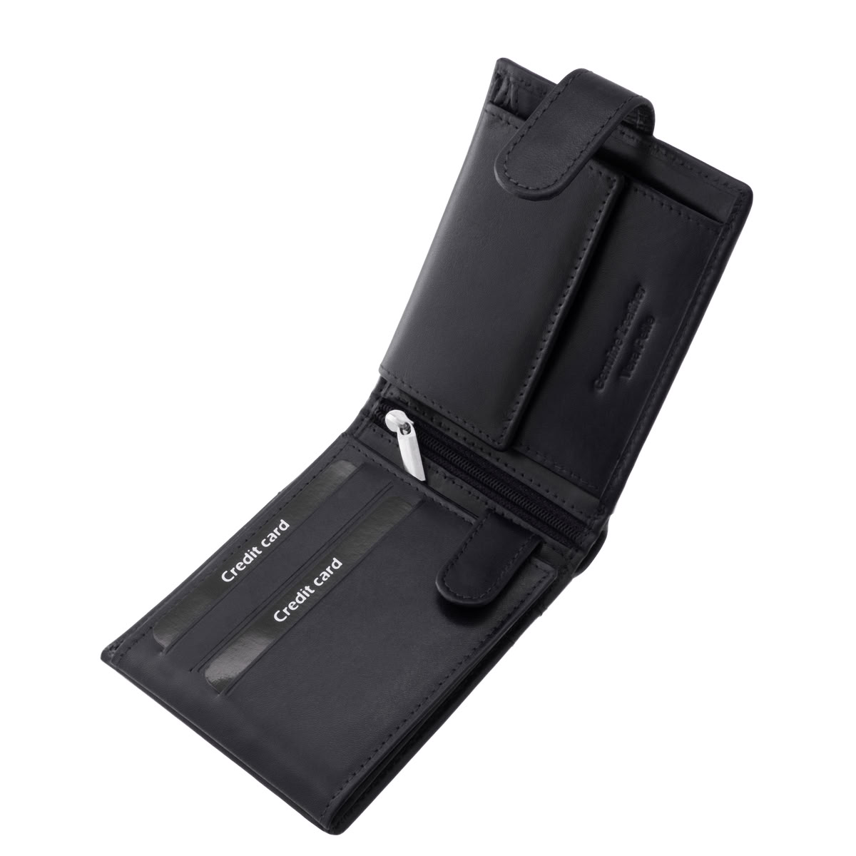 A belső elrendezésnek köszönhetően ez a bőr pénztárca egyszerre praktikus, rendezett és férfias.