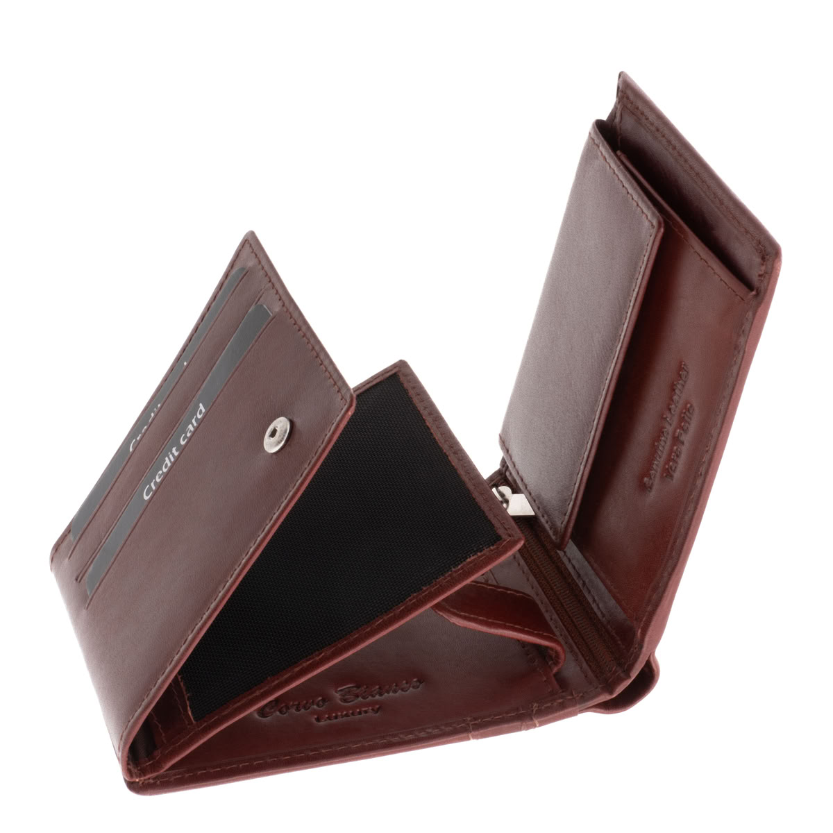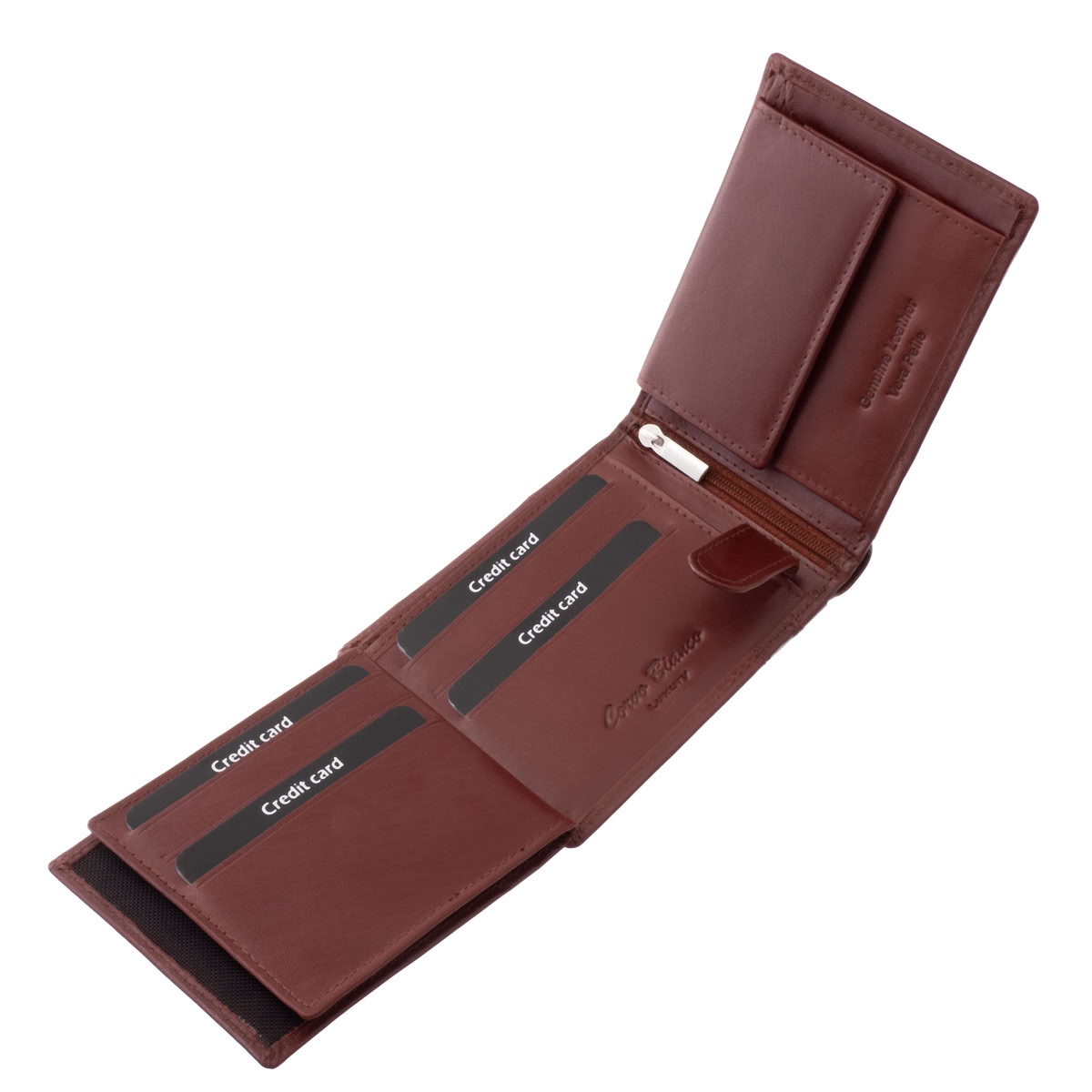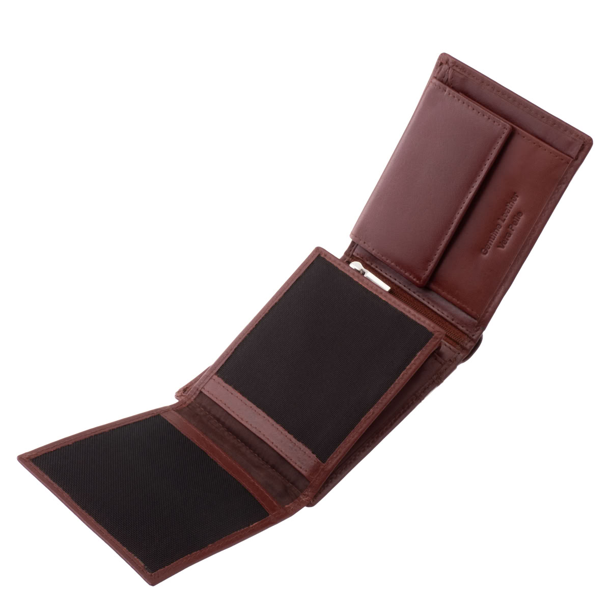 A belső elrendezésnek köszönhetően ez a bőr pénztárca egyszerre praktikus, rendezett és férfias.