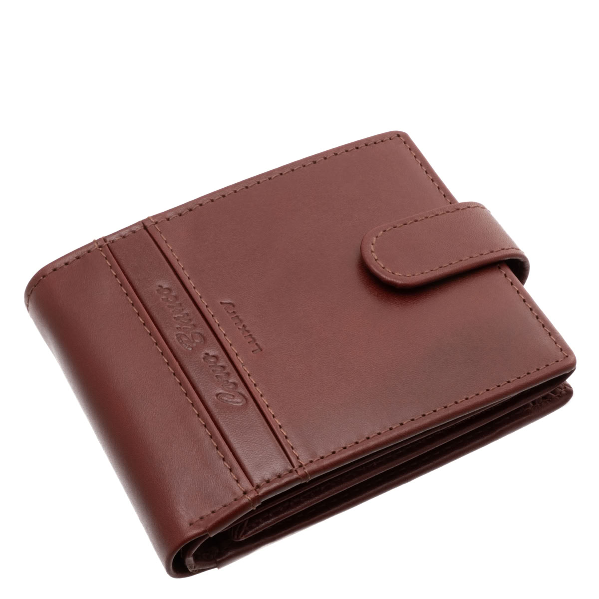 A pénztárca fedelén elegáns, függőleges bőrbetét fut végig, benne a míves CORVO BIANCO márkafelirat és a Luxury jelzés, amely a márka prémium minőségének szimbóluma.