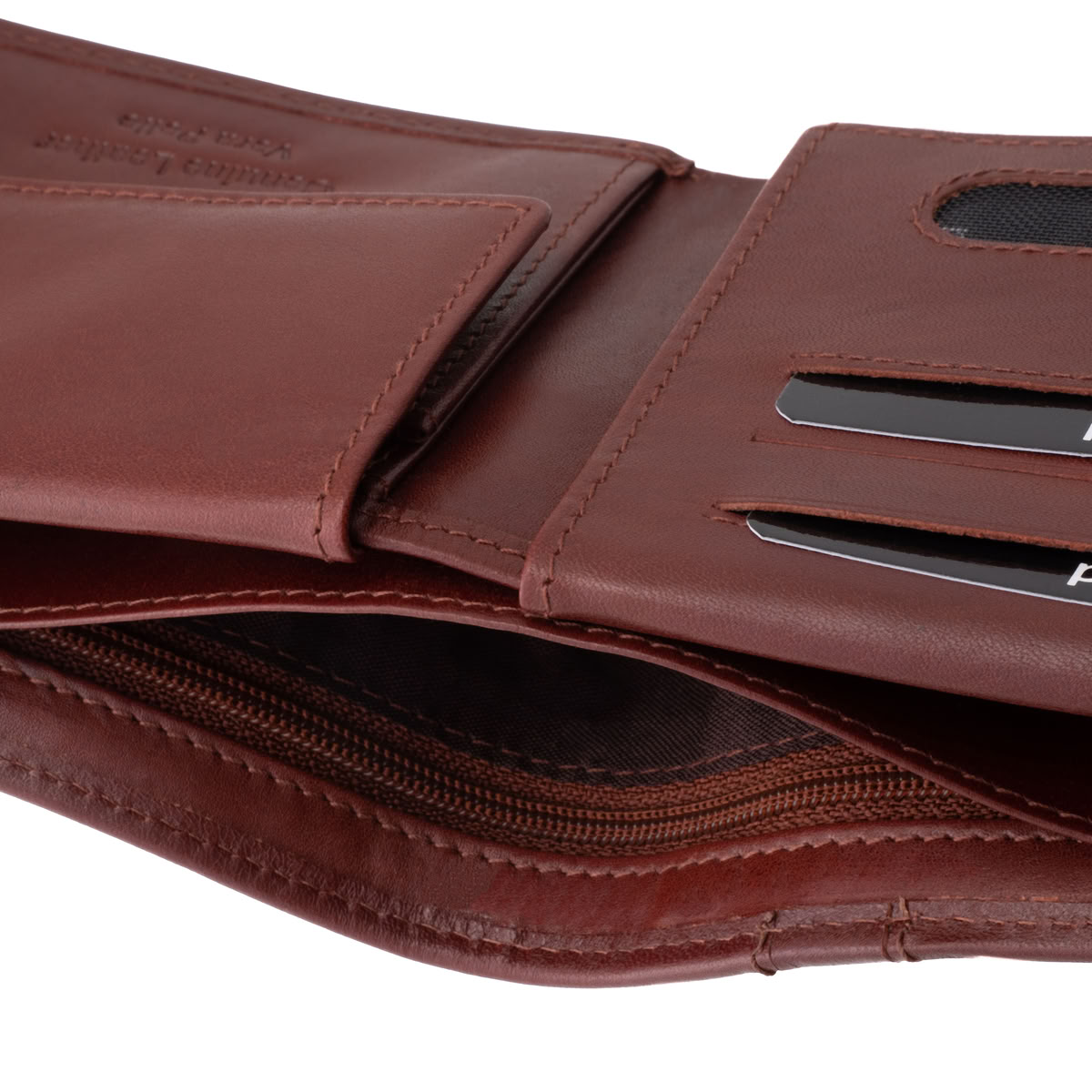 - A pénztárca hátfalában két darab normál és egy darab cipzárral zárható papírpénztartó került kialakításra, amely alkalmas a nagyobb címletű bankjegyek biztonságos tárolására.