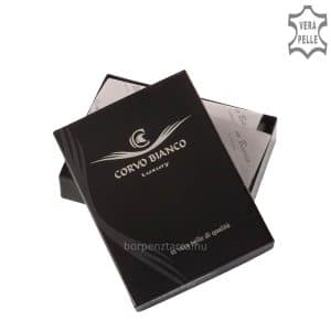 Minőségi prémium kategóriájú, elegáns selyemfényű bőrből készült dekoratív férfi pénztárca RFID védelemmel ellátva Corvo Bianco márka klasszikus darabja.