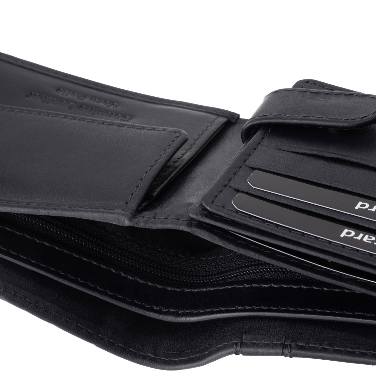 A pénztárca fekete, barna és világosbarna színben készül, selyemfényű, valódi bőrből, amely egyszerre sugároz stílust, minőséget és időtálló eleganciát.