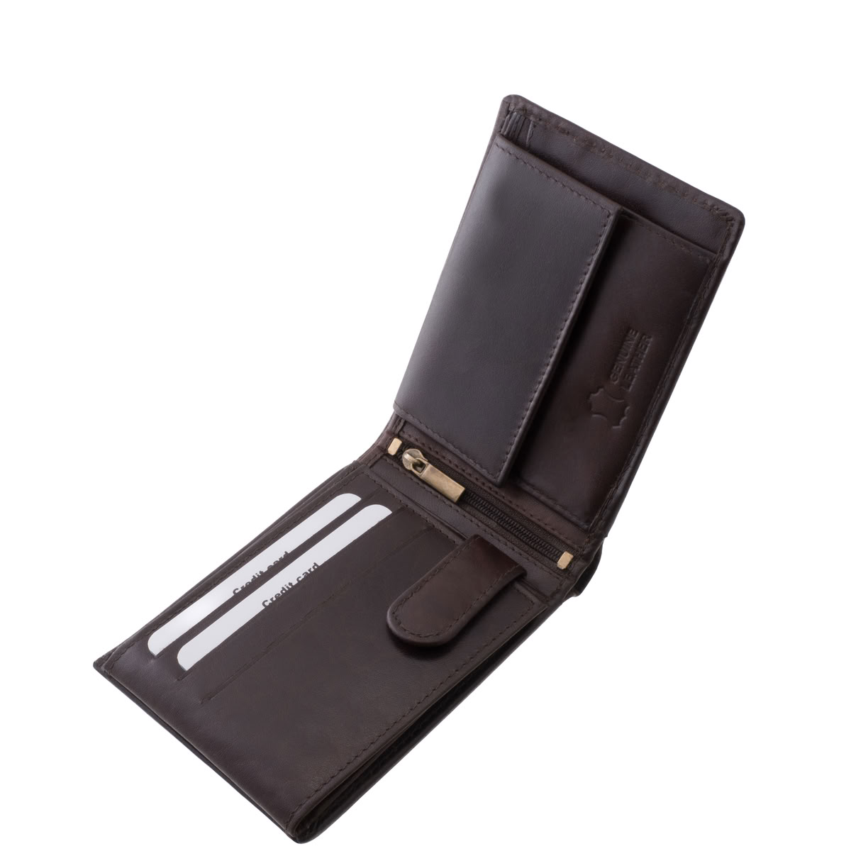 Papírpénztartó: két különálló, tágas rekesz a hátfalban a bankjegyek rendszerezett tárolására.