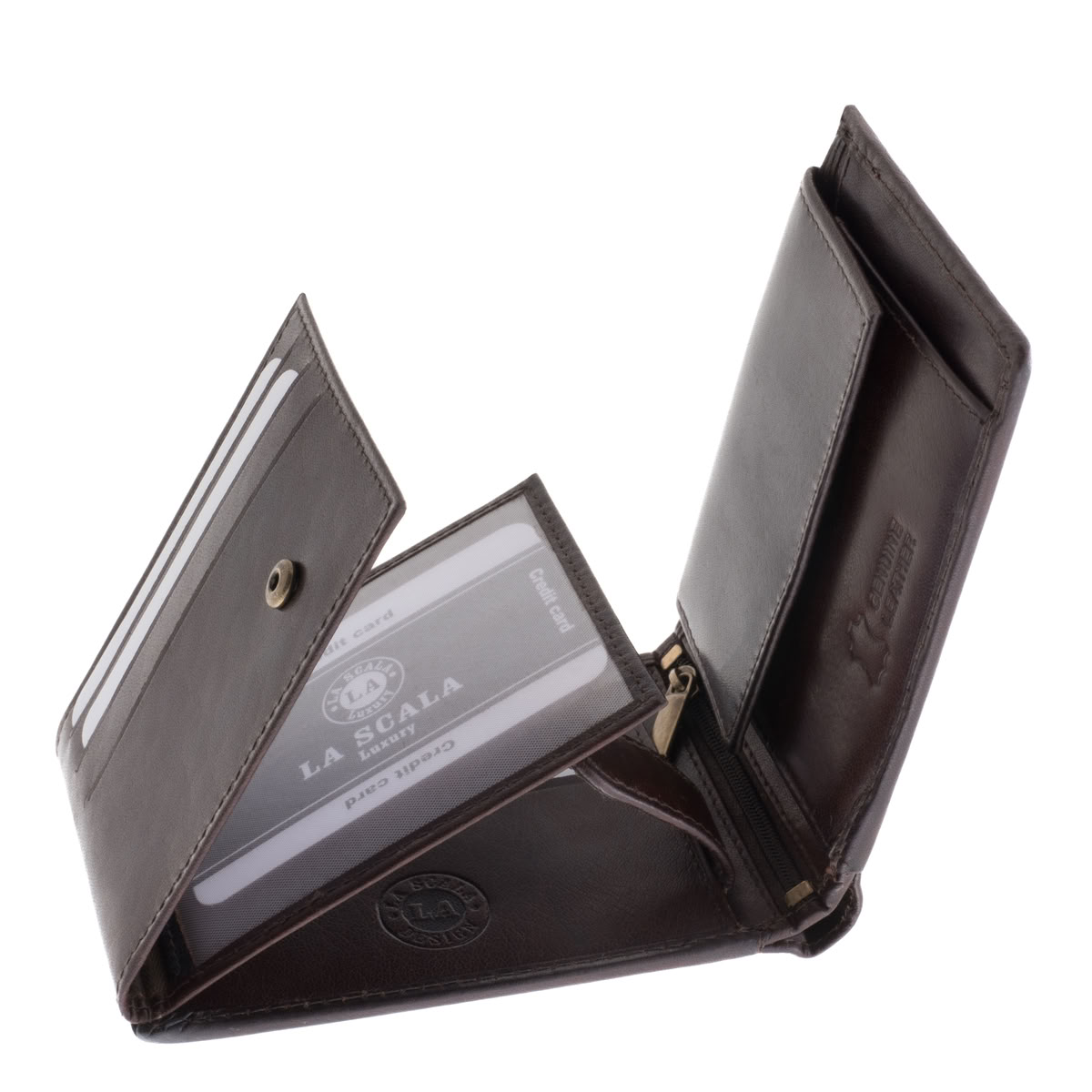 A barna színű bőr La Scala férfi pénztárca megbízható, stílusos és tartós kiegészítő azoknak, akik szeretik az eleganciát és az átgondolt praktikumot.