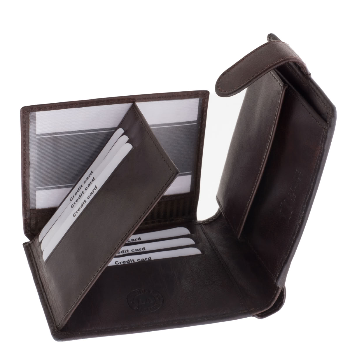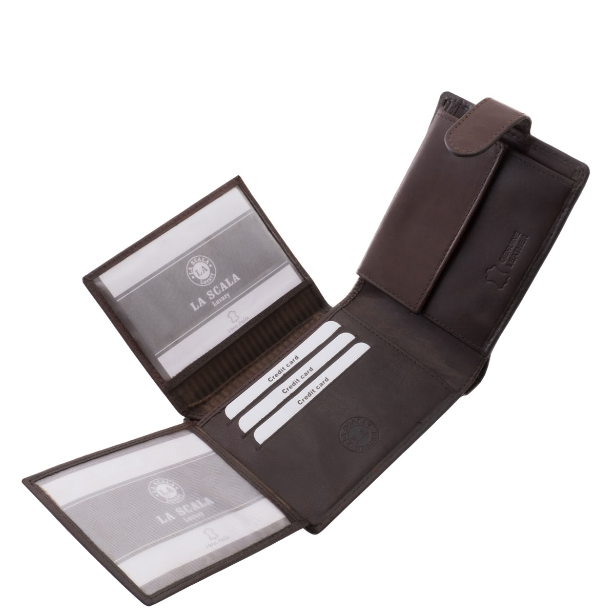 A La Scala férfi bőr pénztárca a klasszikus elegancia és a modern funkcionalitás tökéletes ötvözete. Patentos átkapcsolópántjával, praktikus belső kialakításával és időtálló megjelenésével ideális társ a mindennapokban.