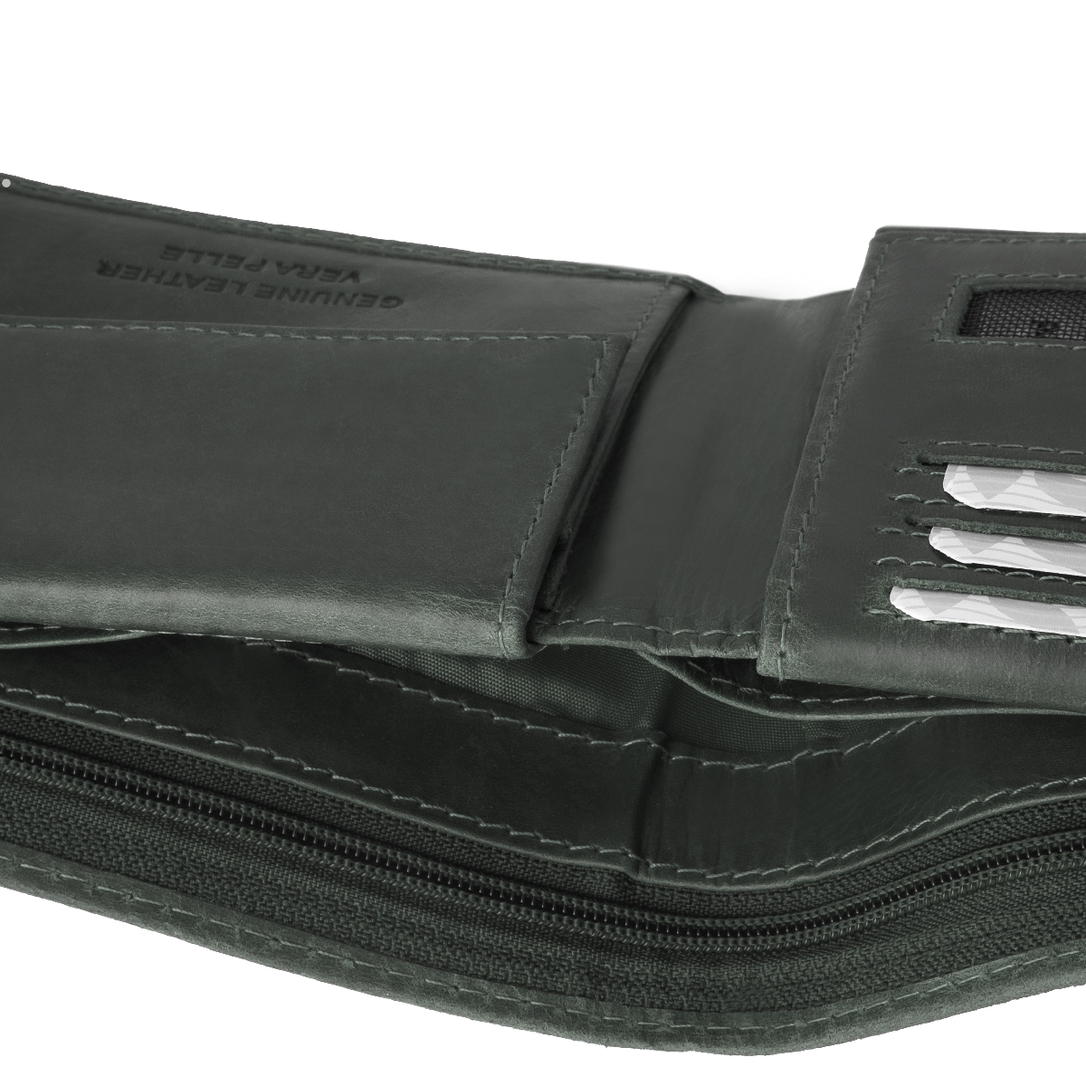 - A tárca hátulja két normál és egy cipzárral záródó készpénztartót tartalmaz, így kedvünk szerint különíthetjük el bankjegyeinket.