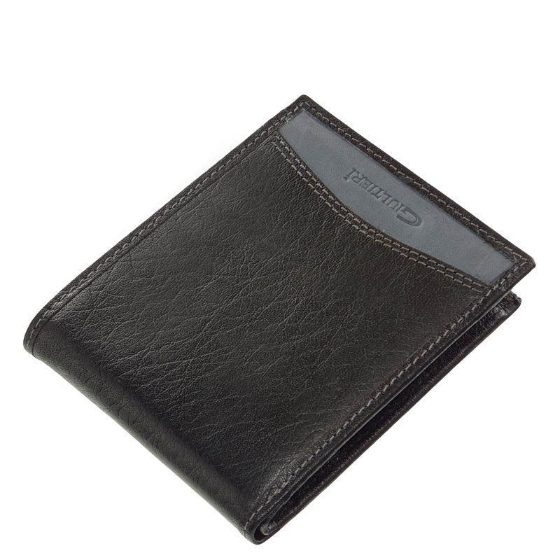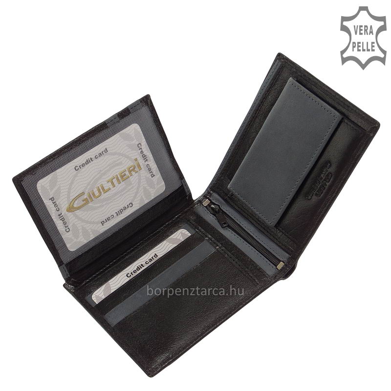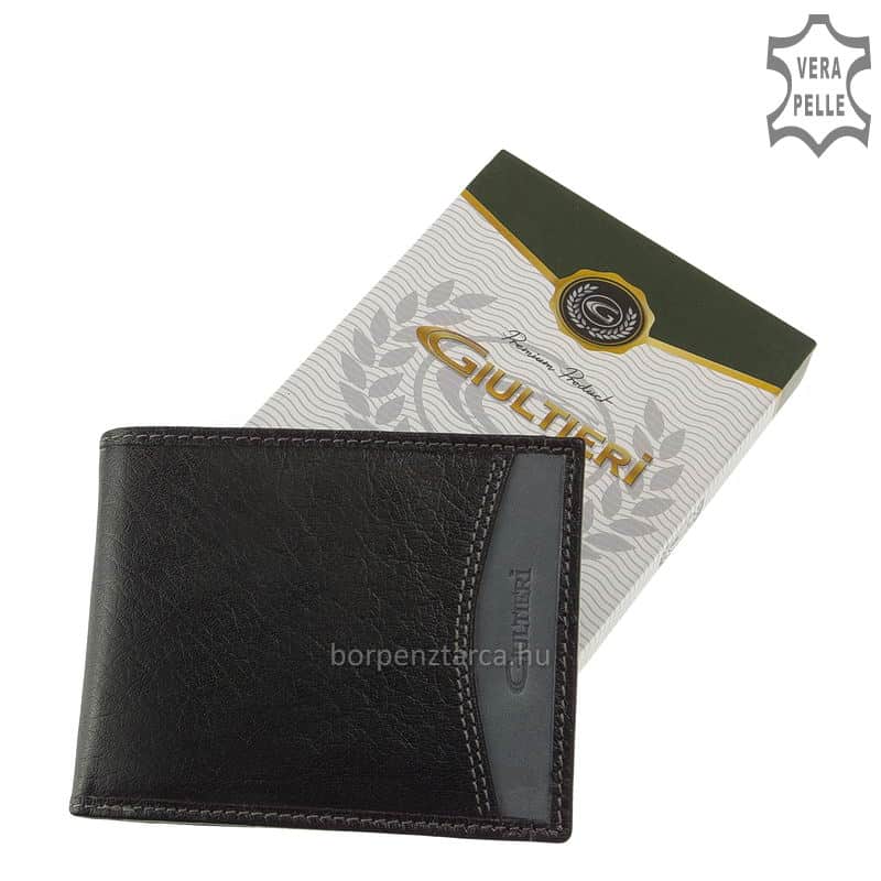 Giultieri márkás, valódi bőrből készült két színű bőr férfi pénztárca barna és fekete színekben, divatos megjelenésű, fedelét és belső részeit egyedi bőrbetéttel láttuk el.