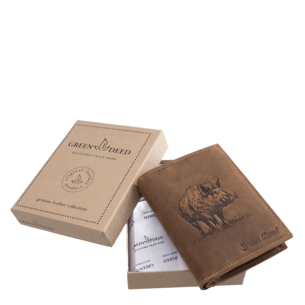 Álló kivitelű, valódi bőr vaddisznó mintás férfi irattartó pénztárca, a GreenDeed márkacsalád egyik természetközeli megjelenésű modellje.