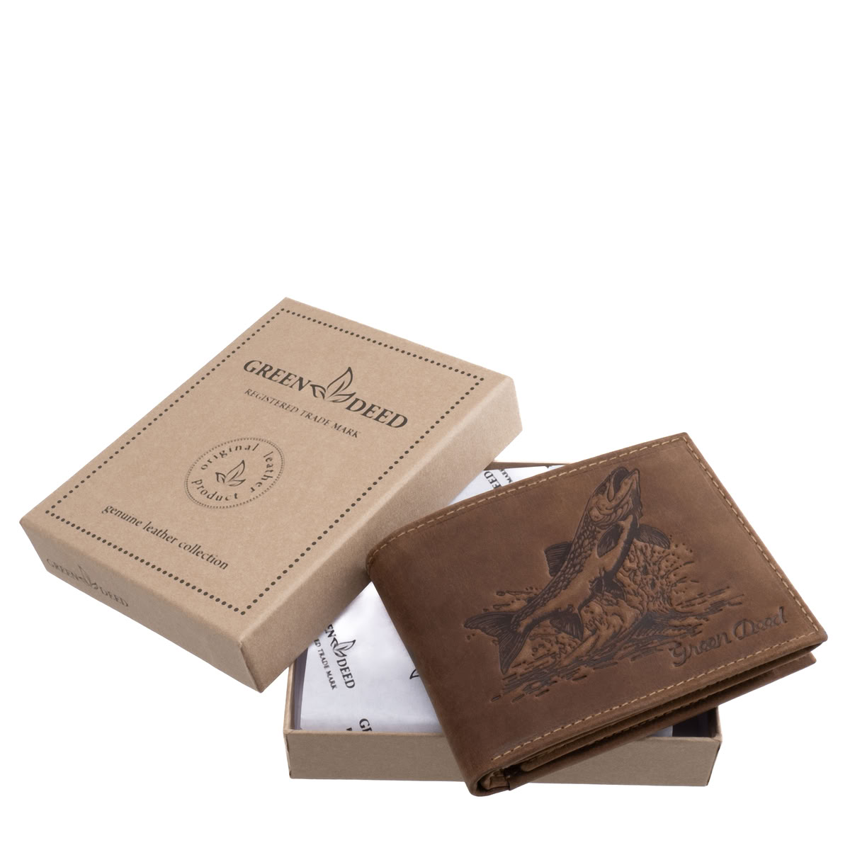 Ez a mintás férfi bőr pénztárca különösen kedvelt ajándék azok számára, akik szeretik a természetet vagy a horgászatot – a motívum egy kedvelt hobbit, a vízpart nyugalmát és a természet szeretetét idézi.