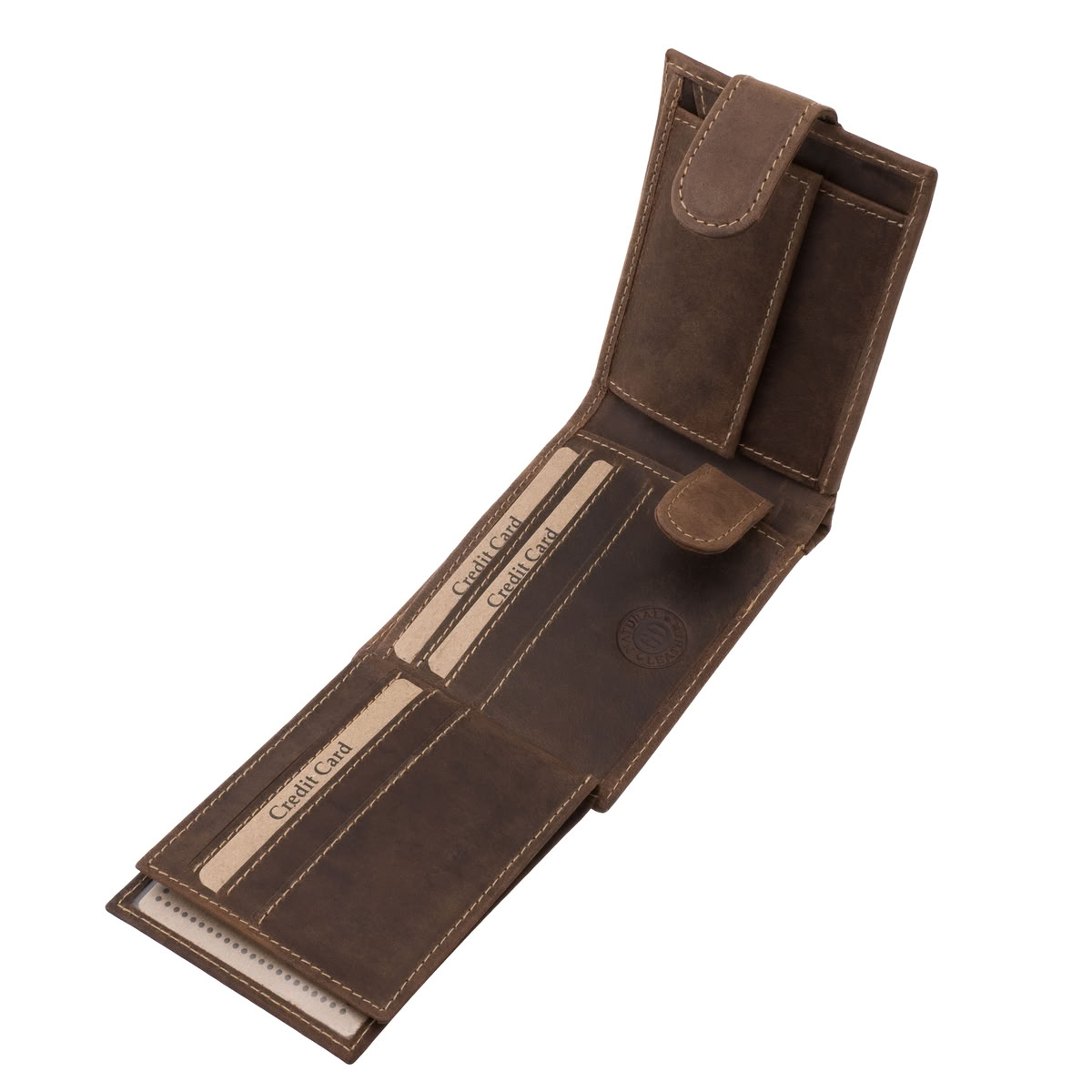 A pénztárca fedelén külső átkapcsoló pánt található, amely extra biztonságot nyújt, hiszen megbízhatóan zárja a pénztárcát, még telepakolt állapotban is.