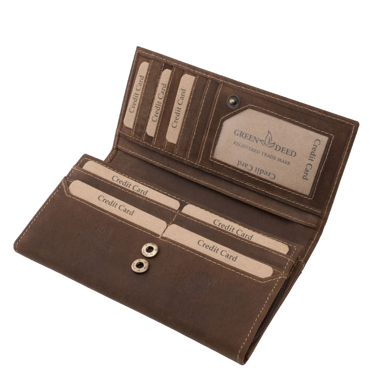 A bőr karakterességét hangsúlyozza ez a nagy méretű női pénztárca, mely a GreenDeed márkacsalád egyik legújabb, divatos modellje.