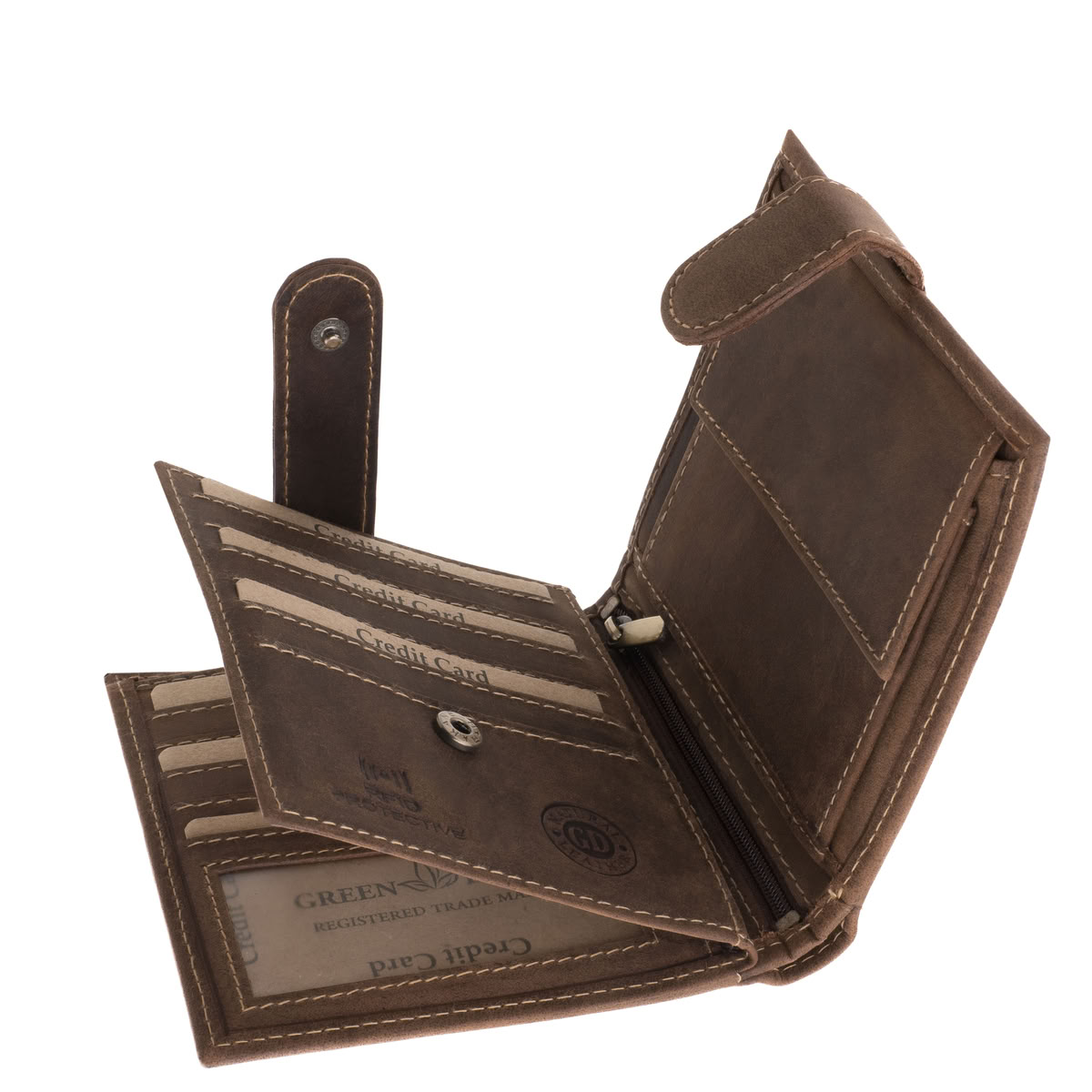 Ez a GreenDeed vadászbőr férfi irattartó pénztárca azok számára készült, akik értékelik a természetes anyagok egyediségét, a praktikus belső elrendezést és a biztonságot nyújtó külső átkapcsoló pántot.