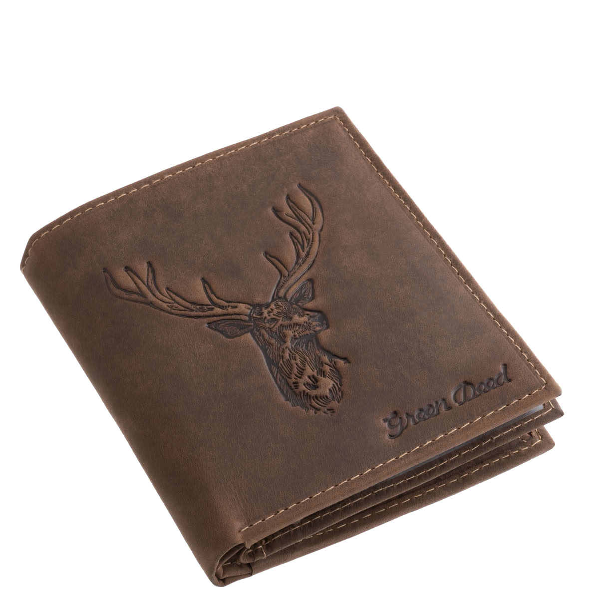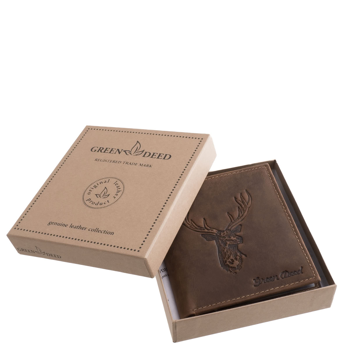 Ez a GreenDeed vadászbőr férfi irattartó pénztárca a természetességet, a praktikusságot és a tartósságot ötvözi – különlegességét pedig a fedelén díszelgő szarvasfej minta adja.