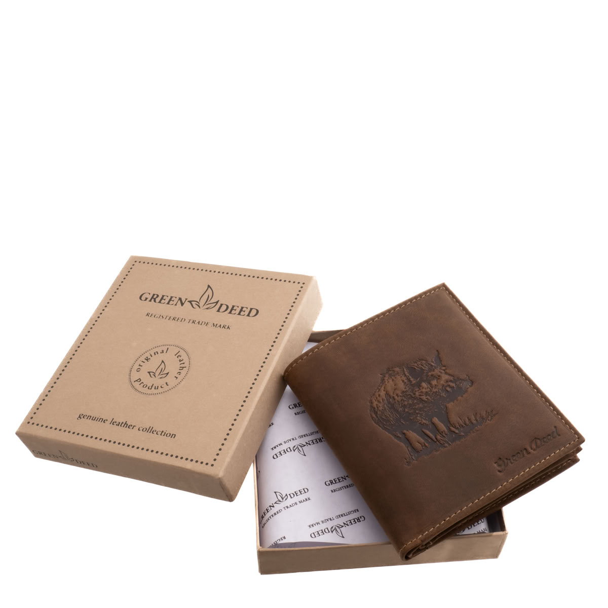 Ez a GreenDeed vadászbőr férfi irattartó pénztárca a természetességet, a praktikusságot és a tartósságot ötvözi – különlegességét pedig a fedelén látható vaddisznó motívum adja.