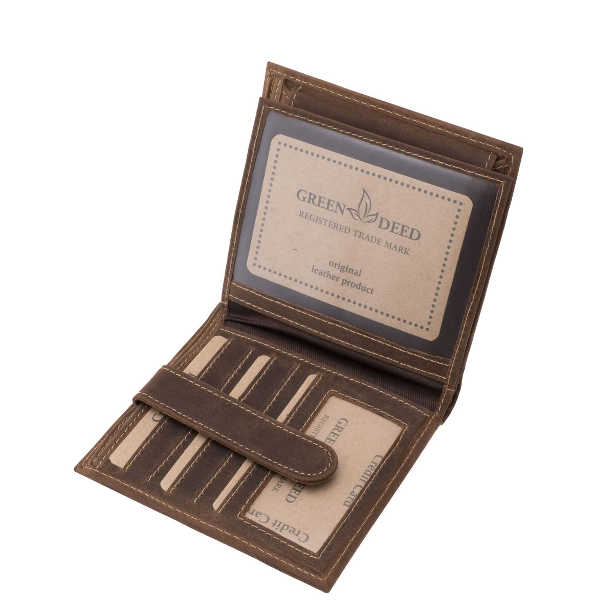 Ez a prémium marhabőrből készült, natúr vadászbőr hatású GreenDeed férfi irattartó pénztárca a klasszikus eleganciát ötvözi a praktikus kialakítással.