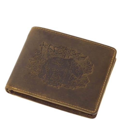 Prémium minőségű, valódi minőségi bőrből készült, mintás barna színű, hangulatos és igényes vadász férfi bőr pénztárca.