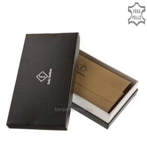 Fekete színű, elegáns díszdobozba csomagolva szállítjuk ezt a női bőr pénztárca termékünket.