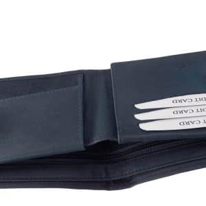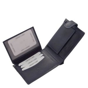 Ez a férfi pénztárca modell fekete, sötétkék, és sötétzöld színű kiváló minőségű marha bőrből készült.