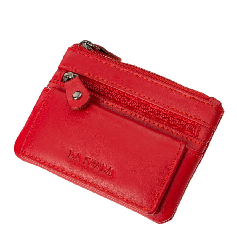 Közepes méretű praktikus bőr kulcstartó, puha valódi nappa bőrből készítve minőségi La Scala márkajelzéssel piros színben.