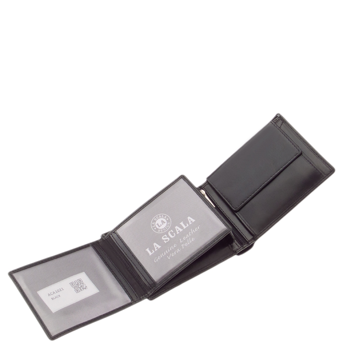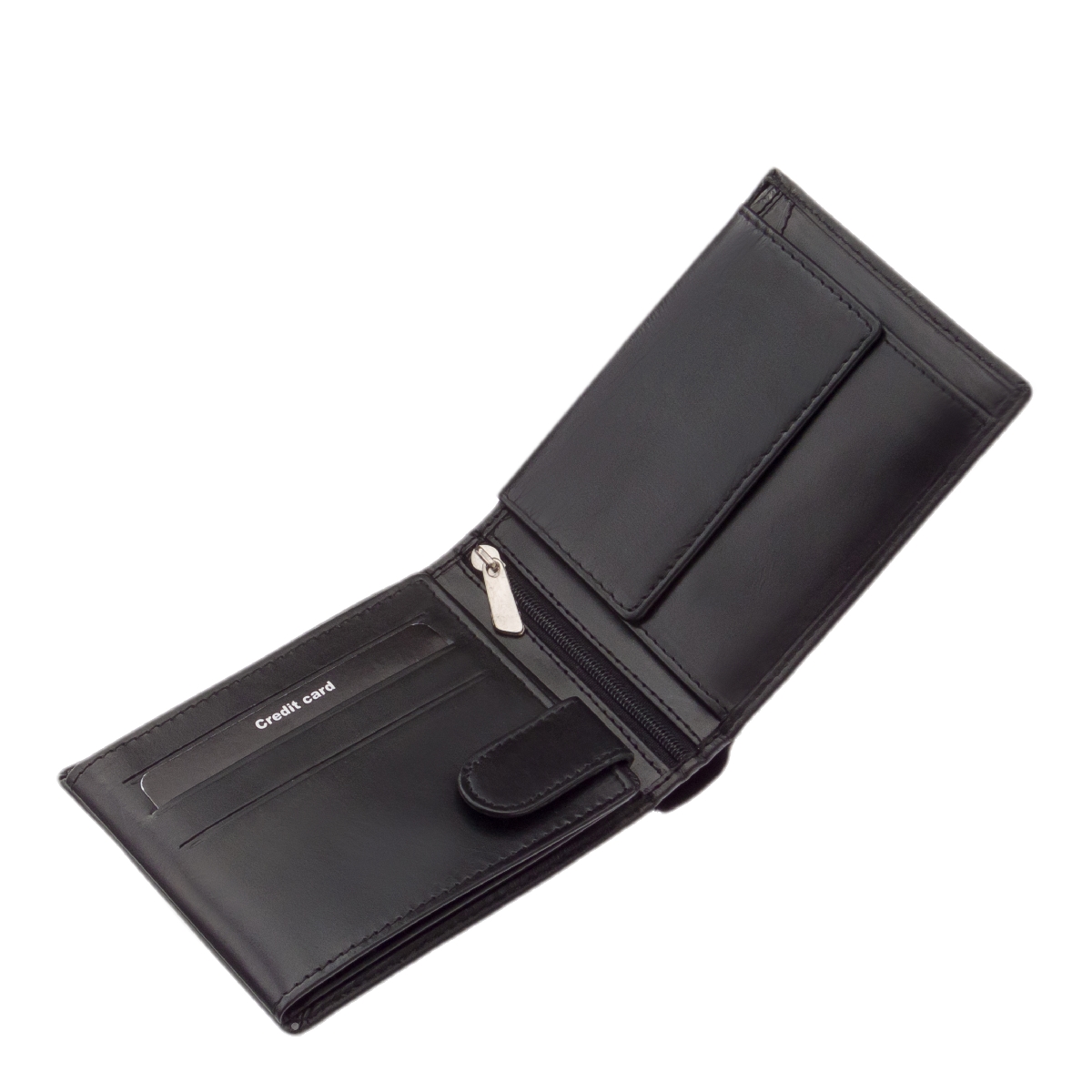 Klasszikus fekete színű külsővel rendelkező férfi bőr pénztárca, melynek minden részletét a praktikus elrendezés jegyében terveztük igazi bőr felhasználásával.