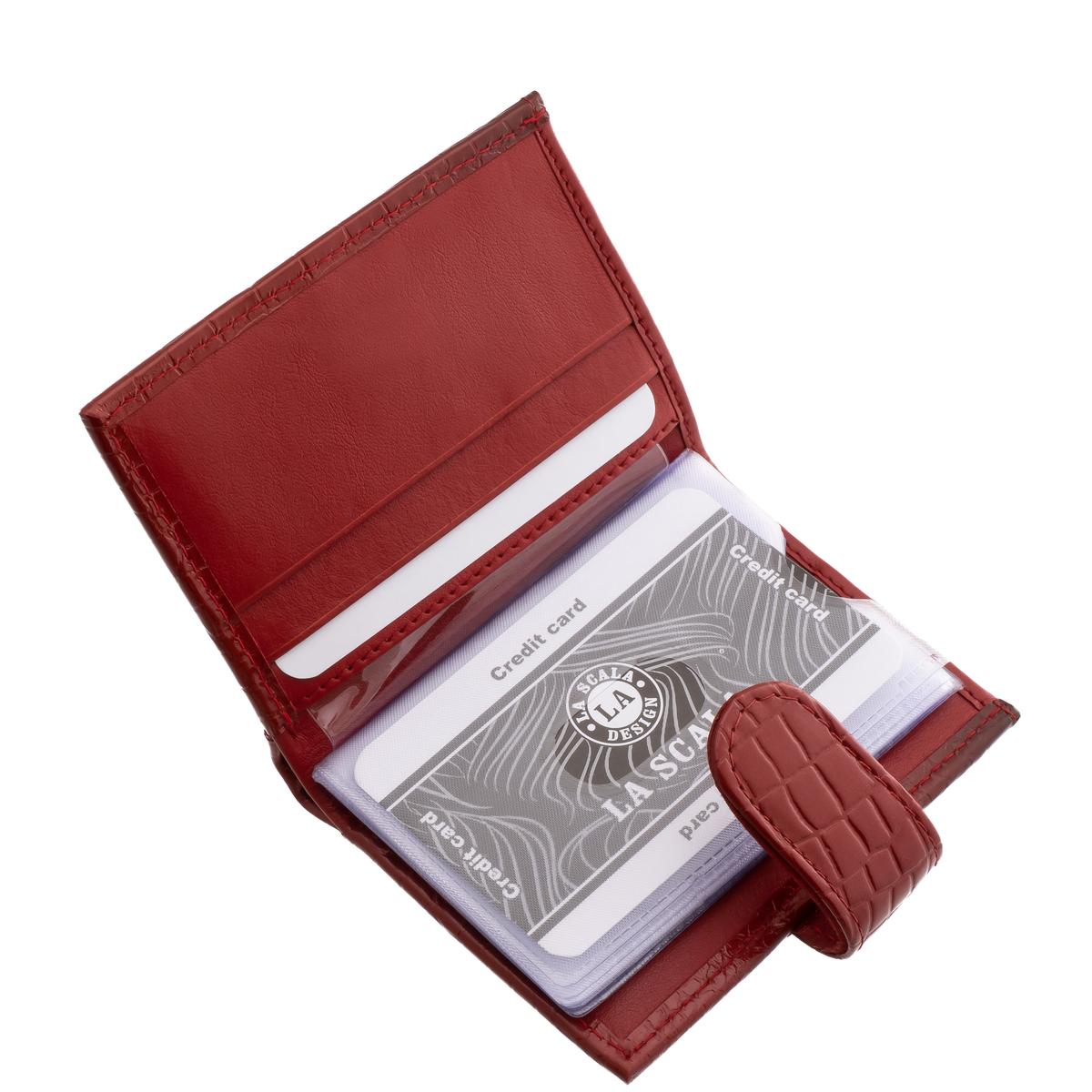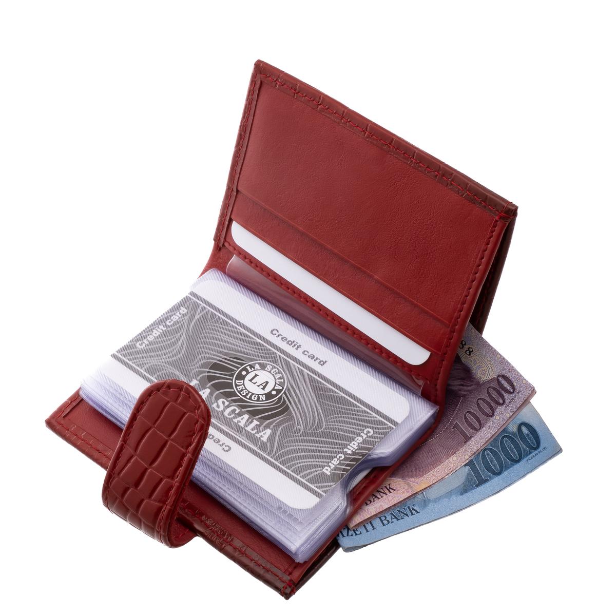 Dekoratív és igazán divatos modellünk ez a valódi bőr, La Scala márkás, croco mintás, álló elrendezésű kártyatartó, minőségi díszdobozban.