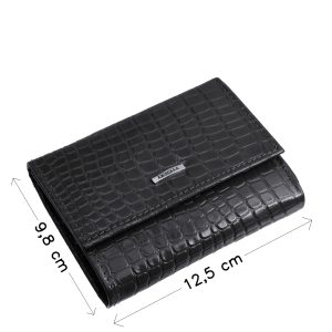 A külső borítás különlegessége a krokodil bőr mintázatú valódi bőr, amely elegáns és karakteres megjelenést kölcsönöz a női pénztárca modellnek.