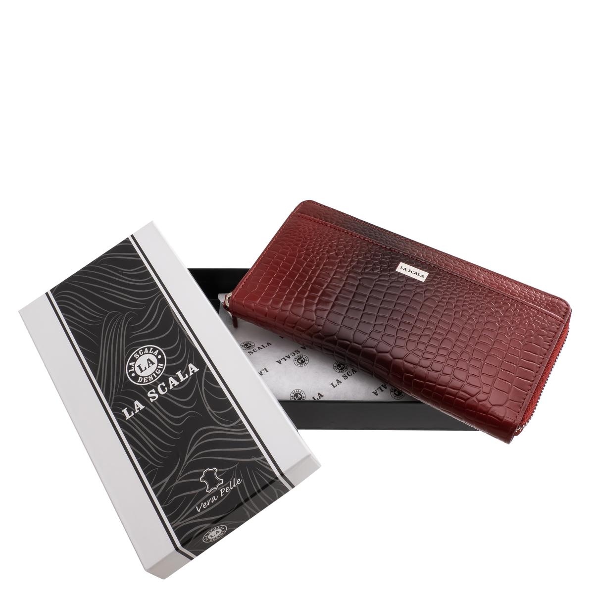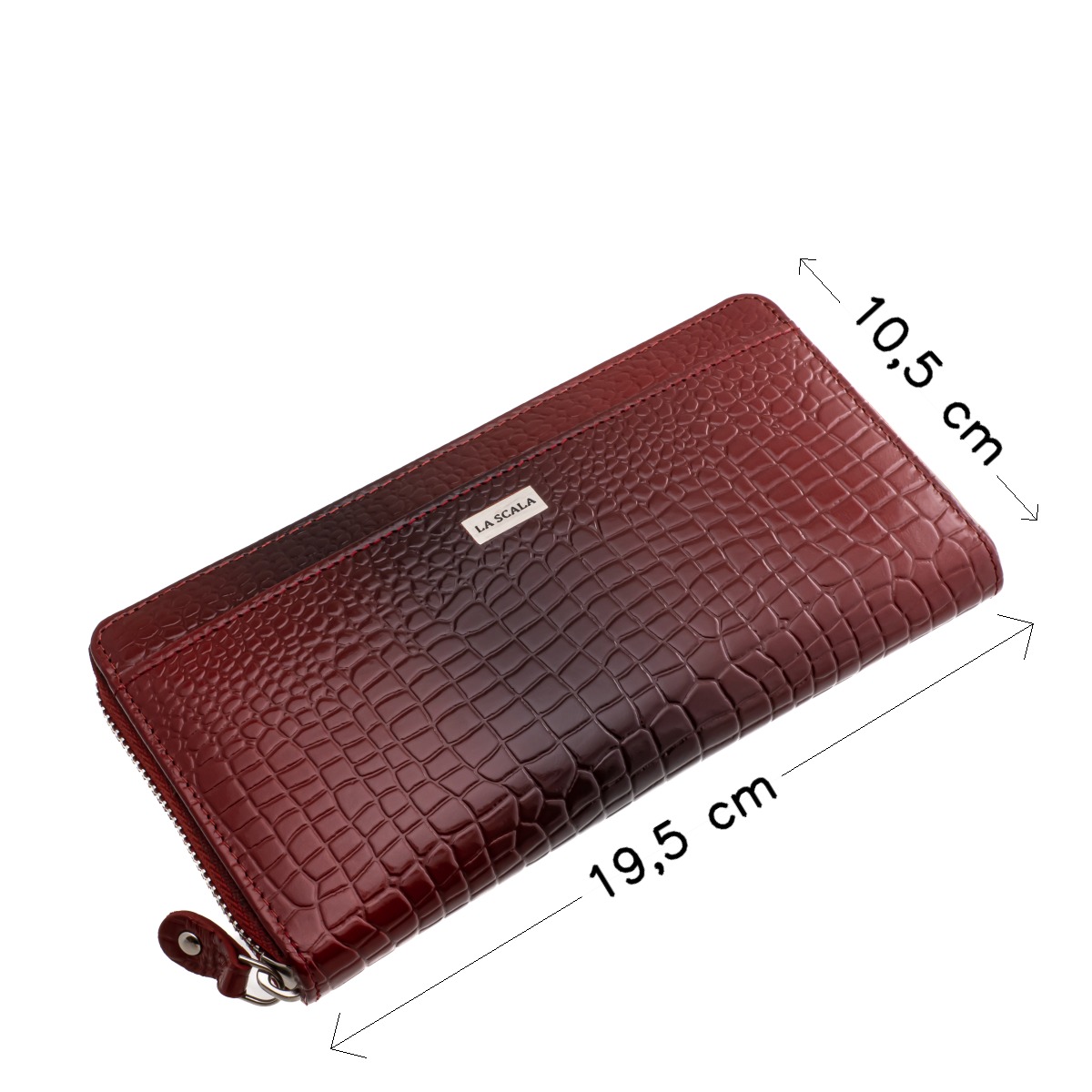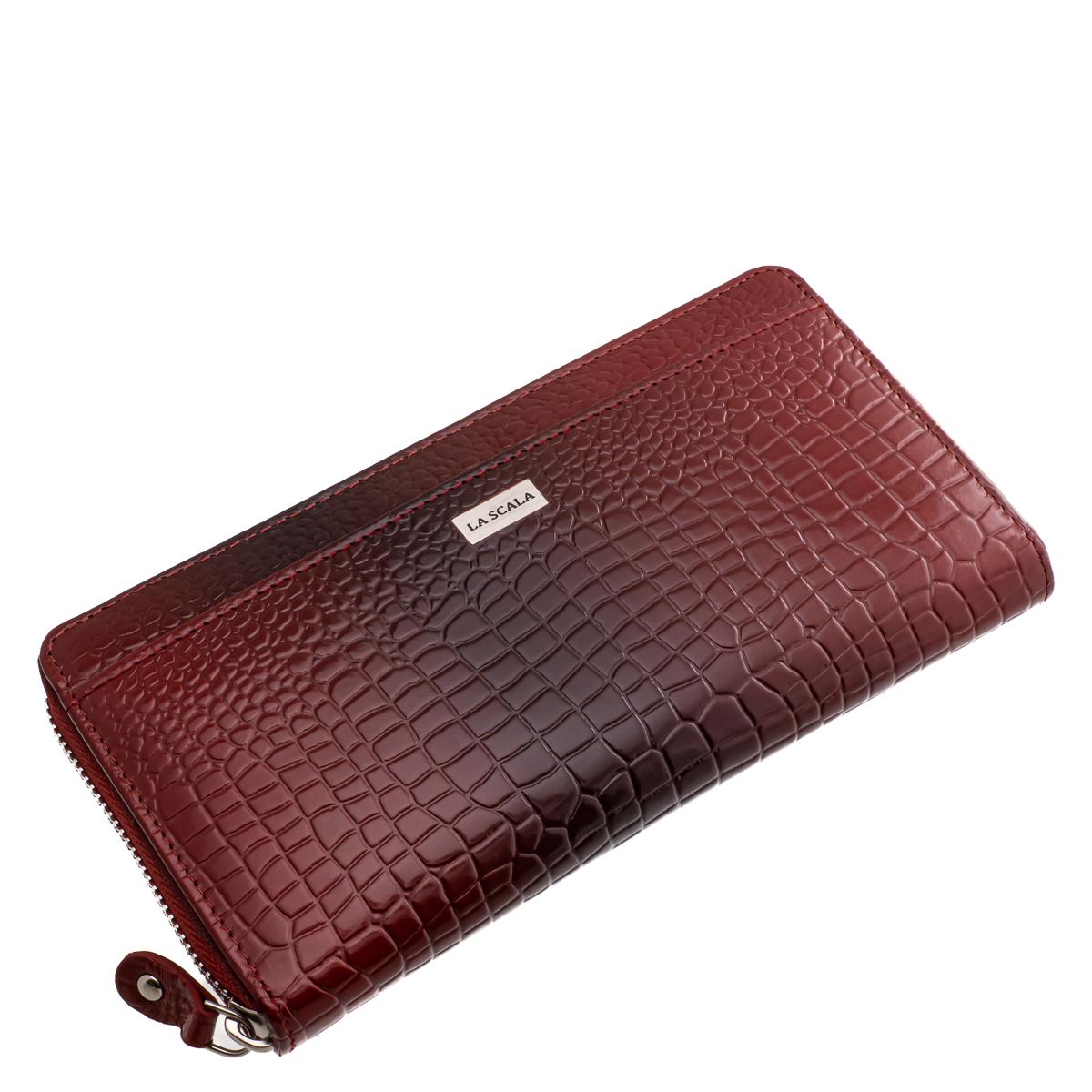 Stílusos croco mintás, nagyméretű, körbe cipzáros, valódi bőr női pénztárca, elegáns La Scala fémlogóval, mutatós és minőségi díszdobozban.