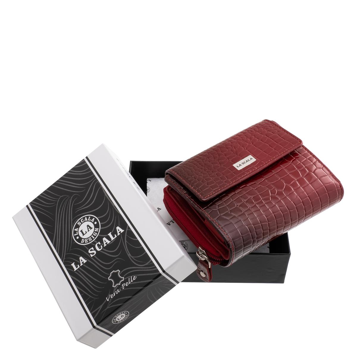 Stílusos és praktikus választás: valódi bőr , kisméretű női pénztárca divatos croco mintázattal, hozzá illő minőségi díszdobozban a La Scala-tól.