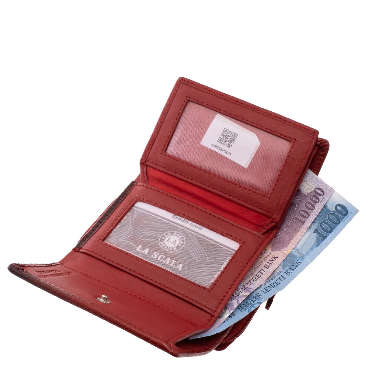 La Scala márkás, valódi bőr, mutatós, kisméretű női pénztárca croco mintával