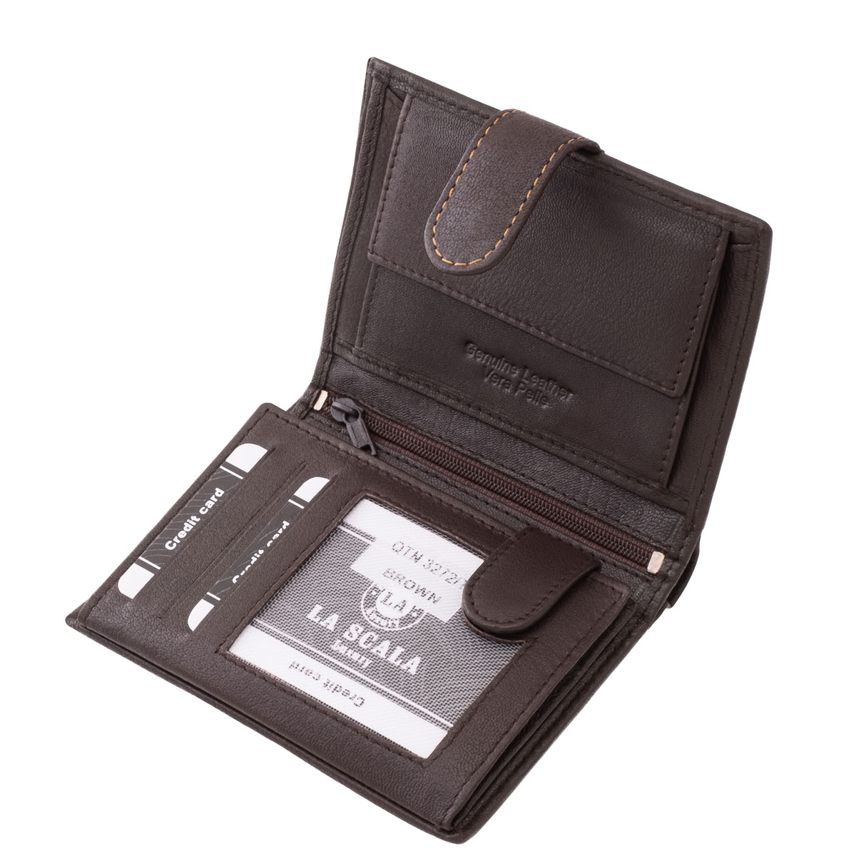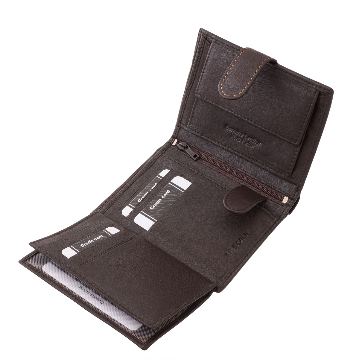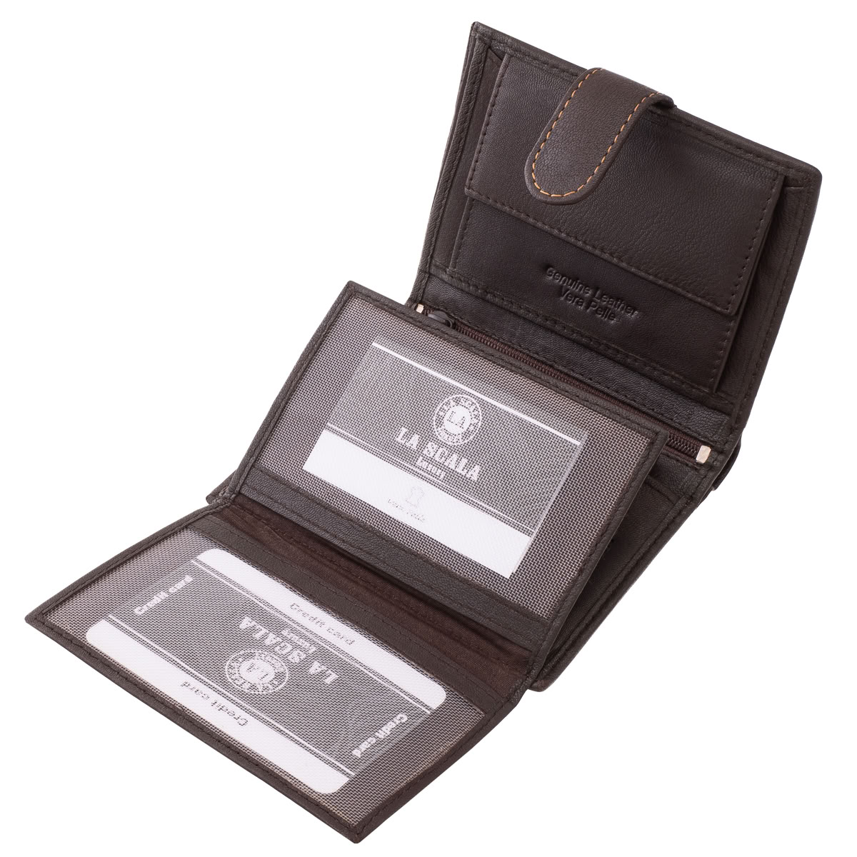 Ez az álló kivitelű, elegáns megjelenésű, valódi bőr, férfi irattartó pénztárca a La Scala márka prémium kollekciójának darabja.