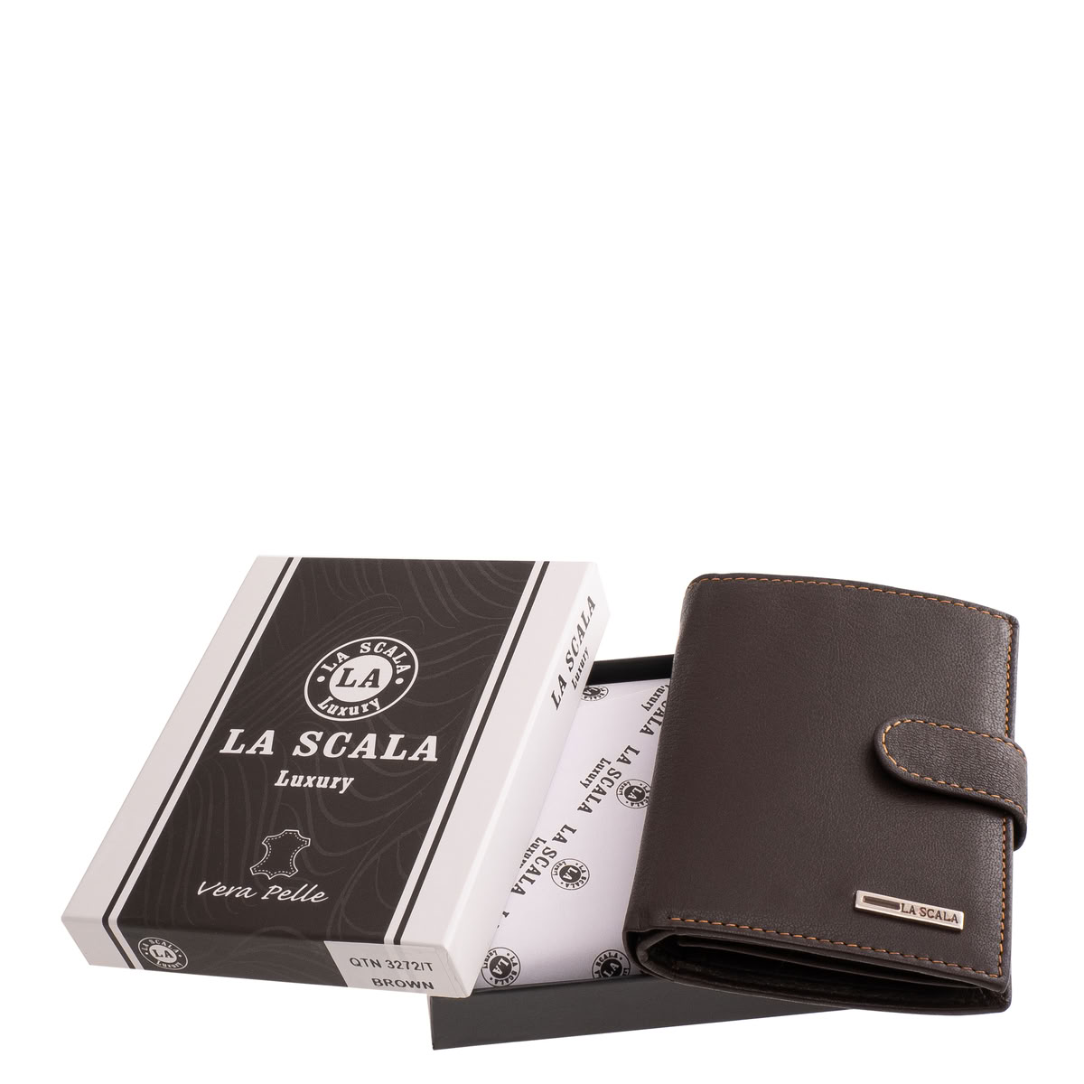 A férfi irattartó pénztárca elegáns megjelenésű, La Scala logós díszdobozban érkezik, amely nemcsak megóvja a terméket, hanem különleges ajándékká is teszi.