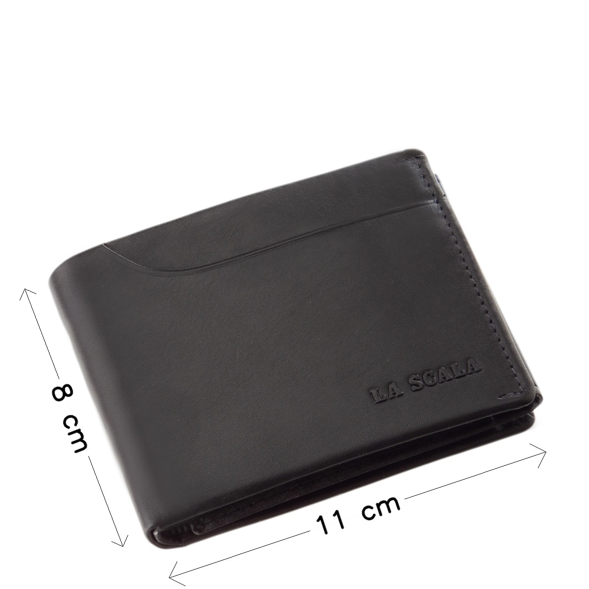 A La Scala márkacsalád, kis méretű, praktikus valódi bőr férfi pénztárca modellje, mely RFID védelmet is tartalmaz, díszdobozos kiadásban.