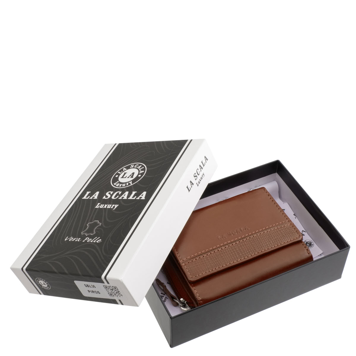 A La Scala márkájú, díszdobozos, divatos és praktikus kis méretű női pénztárca modell, melynek anyaga minőségi, valódi bőr.