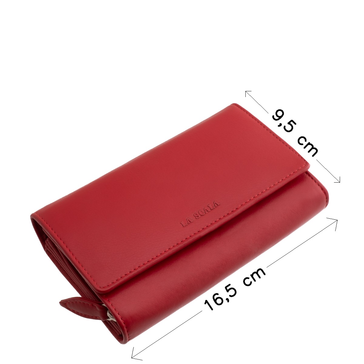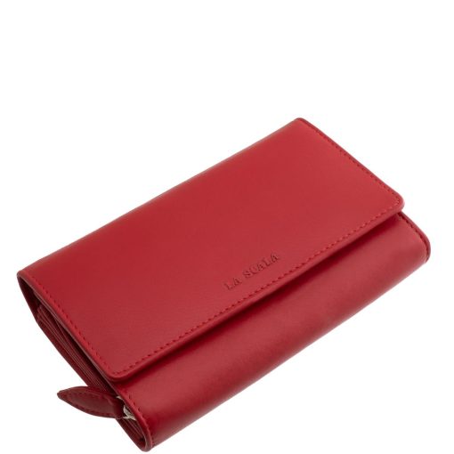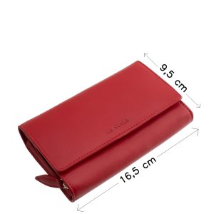 Valódi bőr női pénztárca a hétköznapok divatos kiegészítője, nőies piros színben gyártott praktikus kialakítású nagyméretű modell a La Scala márkától.