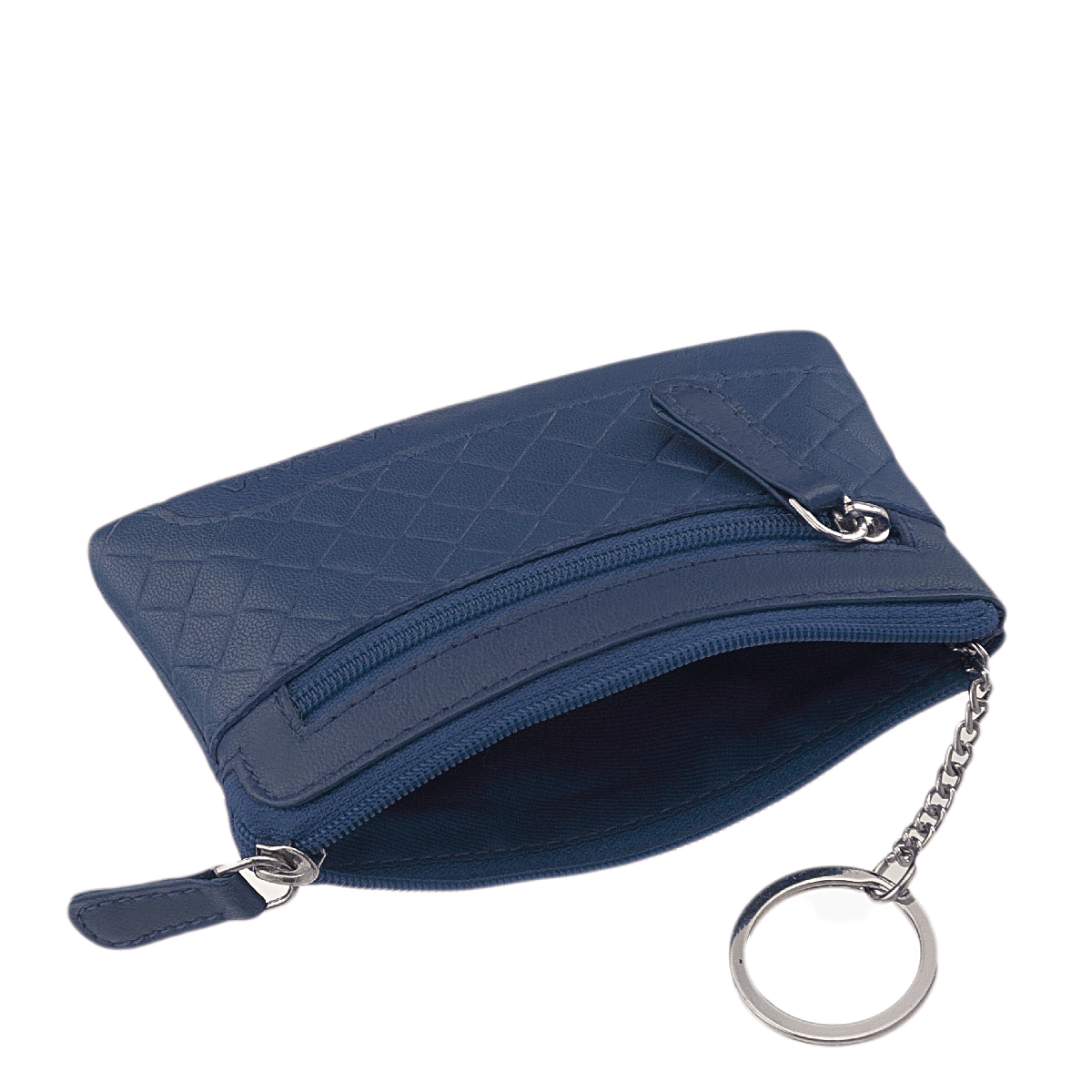 - A cipzárral nyitható selyembélésű belsőben található a kulcstartó karika.