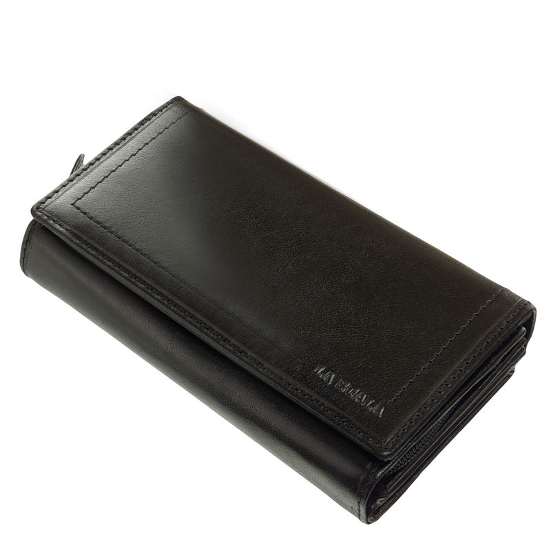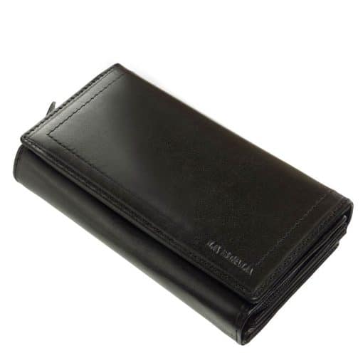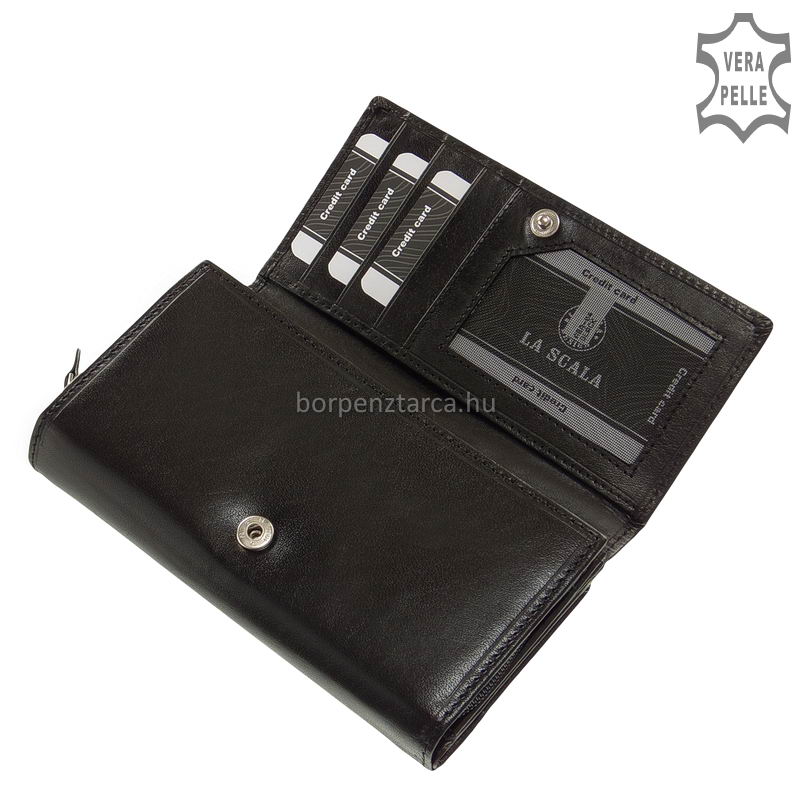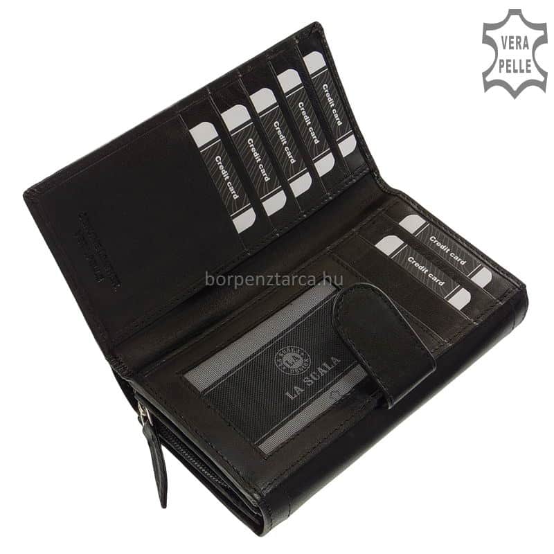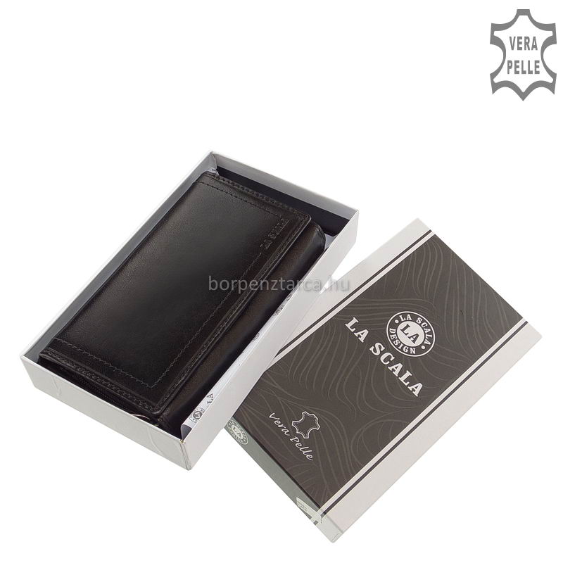 Női bőr pénztárca valódi, minőségi bőrből gyártva a LA SCALA márkacsaládtól mely modell fedelének széleit különleges dupla soros dísztűzés teszi mutatóssá.