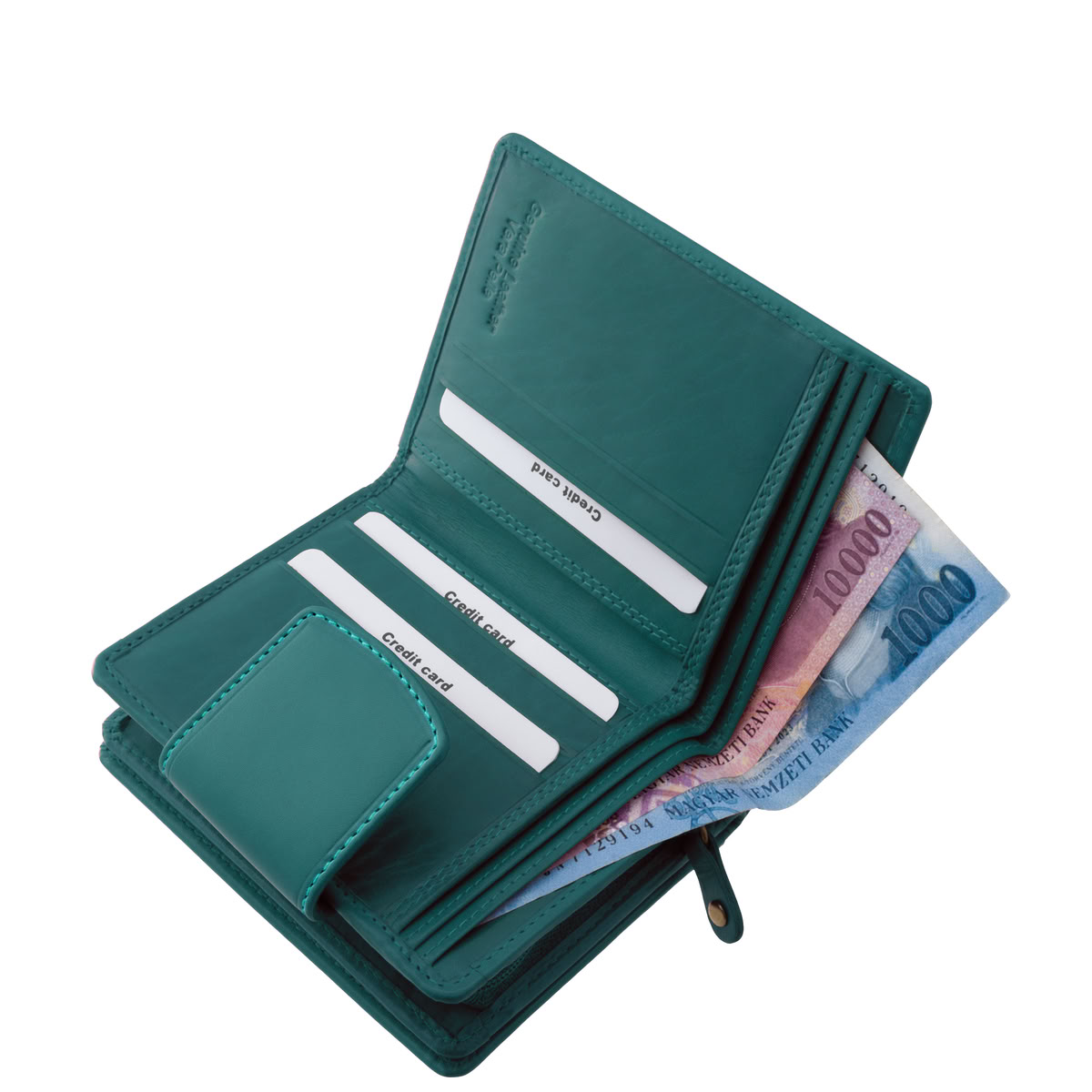 Praktikus kisméretű női bőr pénztárca az alábbi funkciókkal: