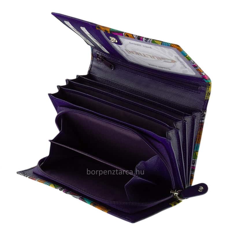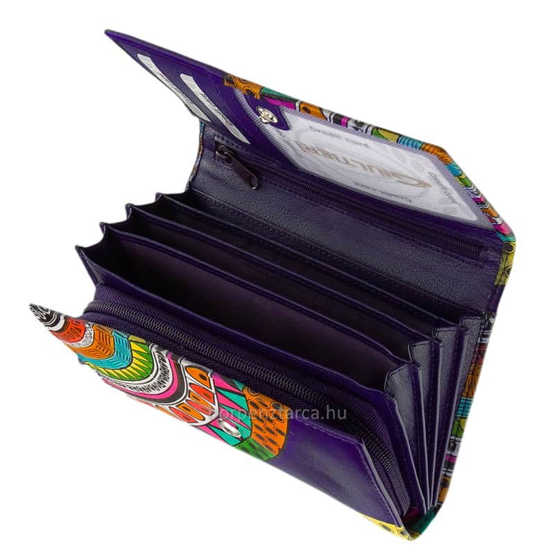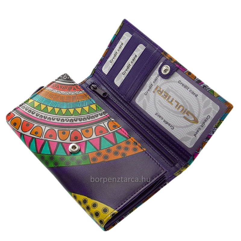 Különlegesen egyedi felületi dizájnnal rendelkező minőségi GIULTIERI márkájú, valódi bőr női pénztárca, mely mintás külsejével a vidámságot hordozza.