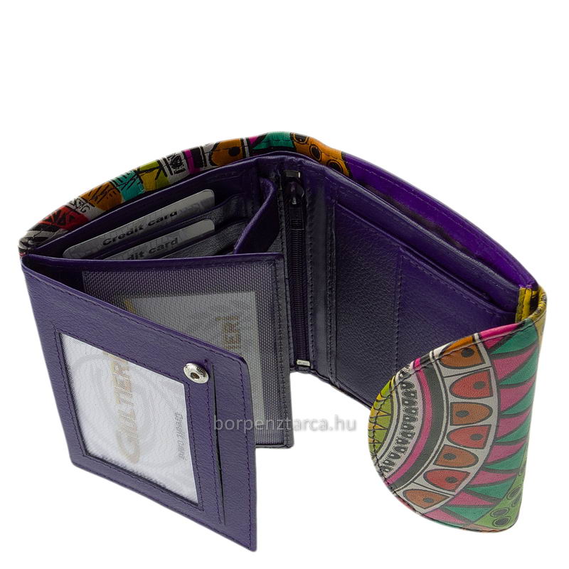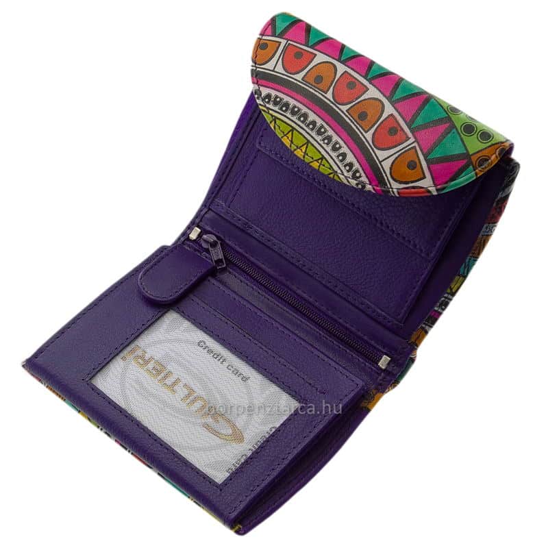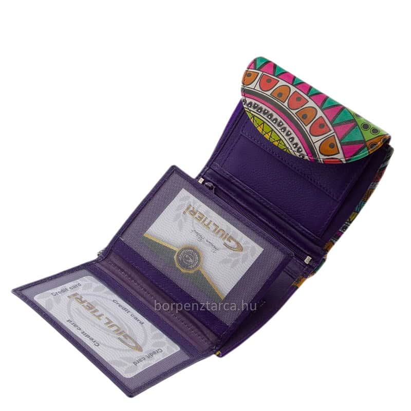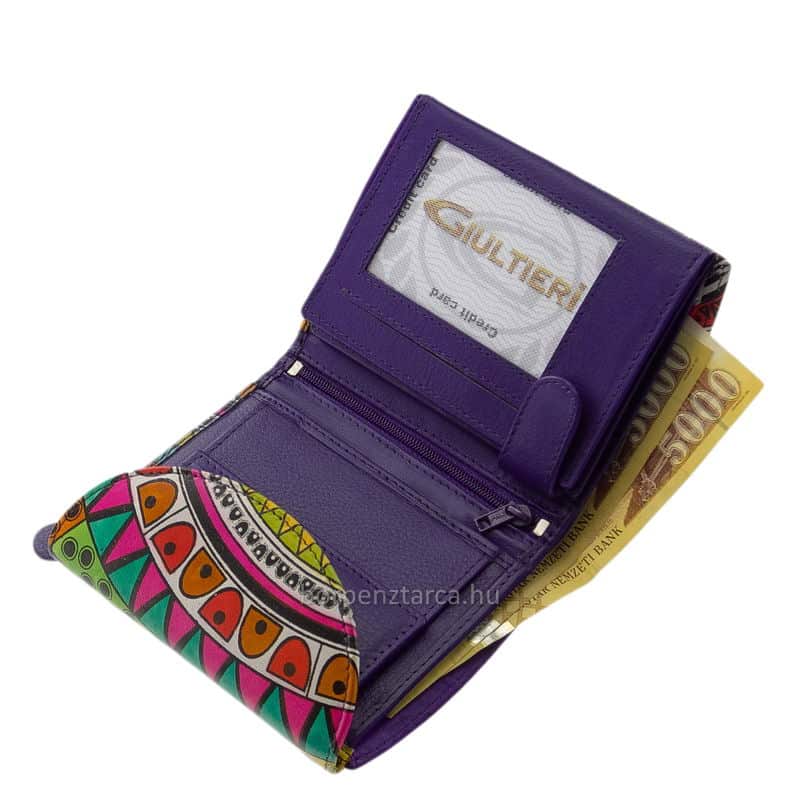 Puha valódi bőrből készült, fiatalos színekkel megtervezett egyedi mintás női bőr pénztárca a minőségi Gultieri termékcsaládtól.