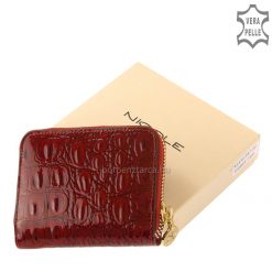 Prémium minőségi eljárással gyártott NICOLE kártyatartó fényes piros lakk bőrből kivitelezett női bőr divat pénztárca modell.