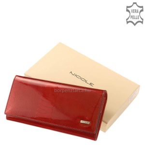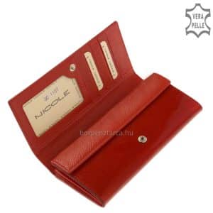 Exkluzív megjelenésű nagyméretű női divat bőr pénztárca, rendkívül dekoratív megjelenést kölcsönző piros színben a NICOLE termékcsaládból.