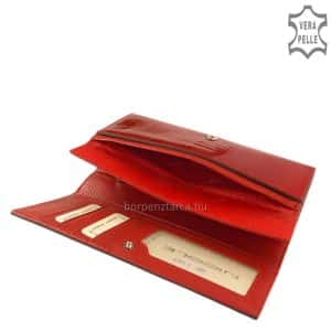 Ez a dekoratív megjelenésű női divat bőr pénztárca, reflektál a hölgyek igényeire hiszen a manapság igazán népszerű piros színben kerül gyártásra.