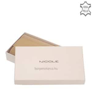 Kézbe illő méretű elegáns női bőr divat pénztárca igazán nőies piros színben, mely fedelét dekoratív Nicole márkajelzés díszíti.
