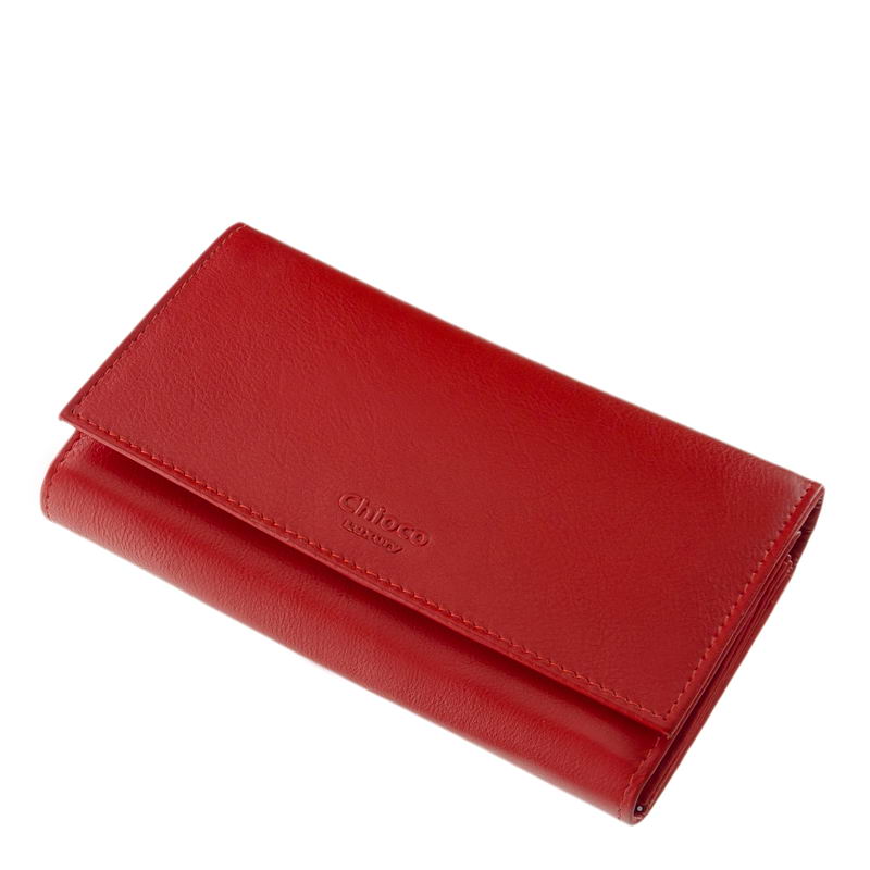 Valódi nappa bőrből készített, minőségi Chioco márkájú nagy méretű női divat bőr pénztárca, melyet fekete és piros színben kínálunk.