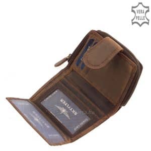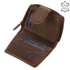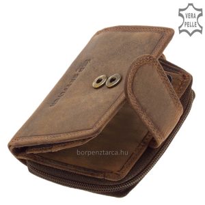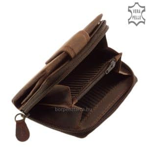 Rusztikus barna, minőségi marhabőrből készült kisméretű női bőr pénztárca díszdobozban, mely egyedi, sportos megjelenésű termékünk.