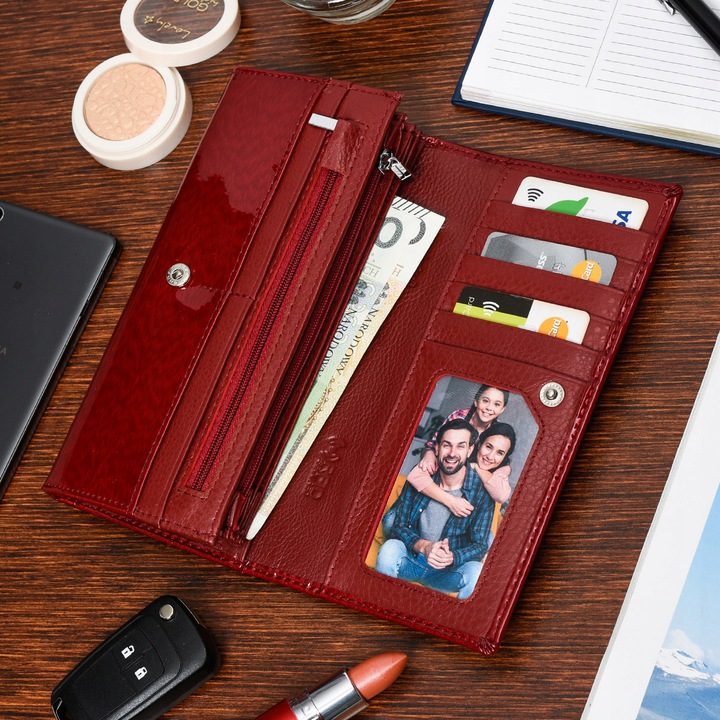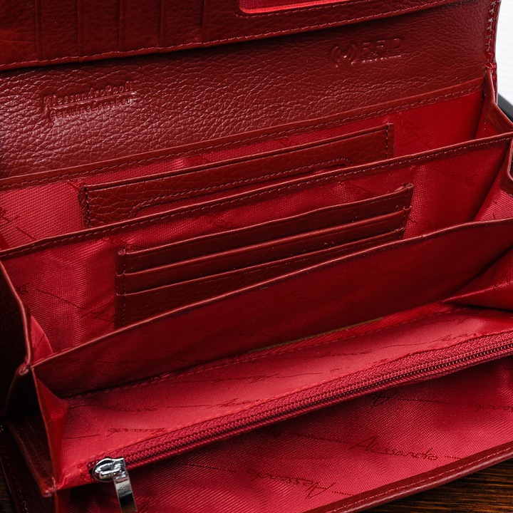 Az aktuális divatot követő hölgyeknek ajánljuk ezt a piros színű, divatos ALESSANDRO PAOLI márkájú, nagy méretű lakk bőr női pénztárca modellt.